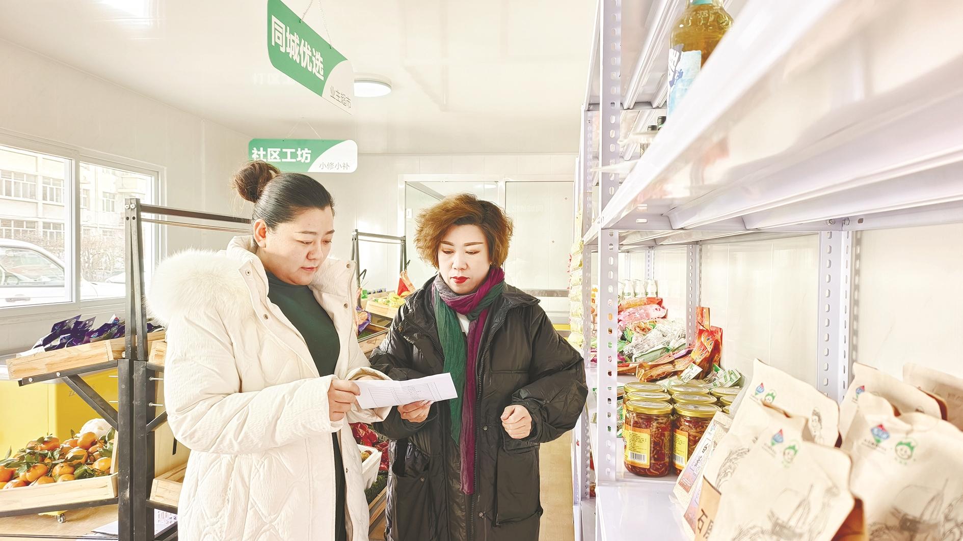 近日,位于海勃湾区温馨家园小区的同城优选一刻钟便民综合服务站建成投用。该项目是我市打造一刻钟社区生活圈过程中采用“政府主导+市场化运营”模式孵化出的本地自创品牌,项目依托“厂—仓—末端”全链路的供应链服务,形成了以社区服务、社区物流、智慧供应链为中心的“线上+线下”社区服务模式,汇聚了家政服务、社区团购、房屋中介、老年基础护理、维修点、快递上门、再生资源回收等80多种便民服务业态。目前,已有51个站点建成投用。(陈佳男 摄)
