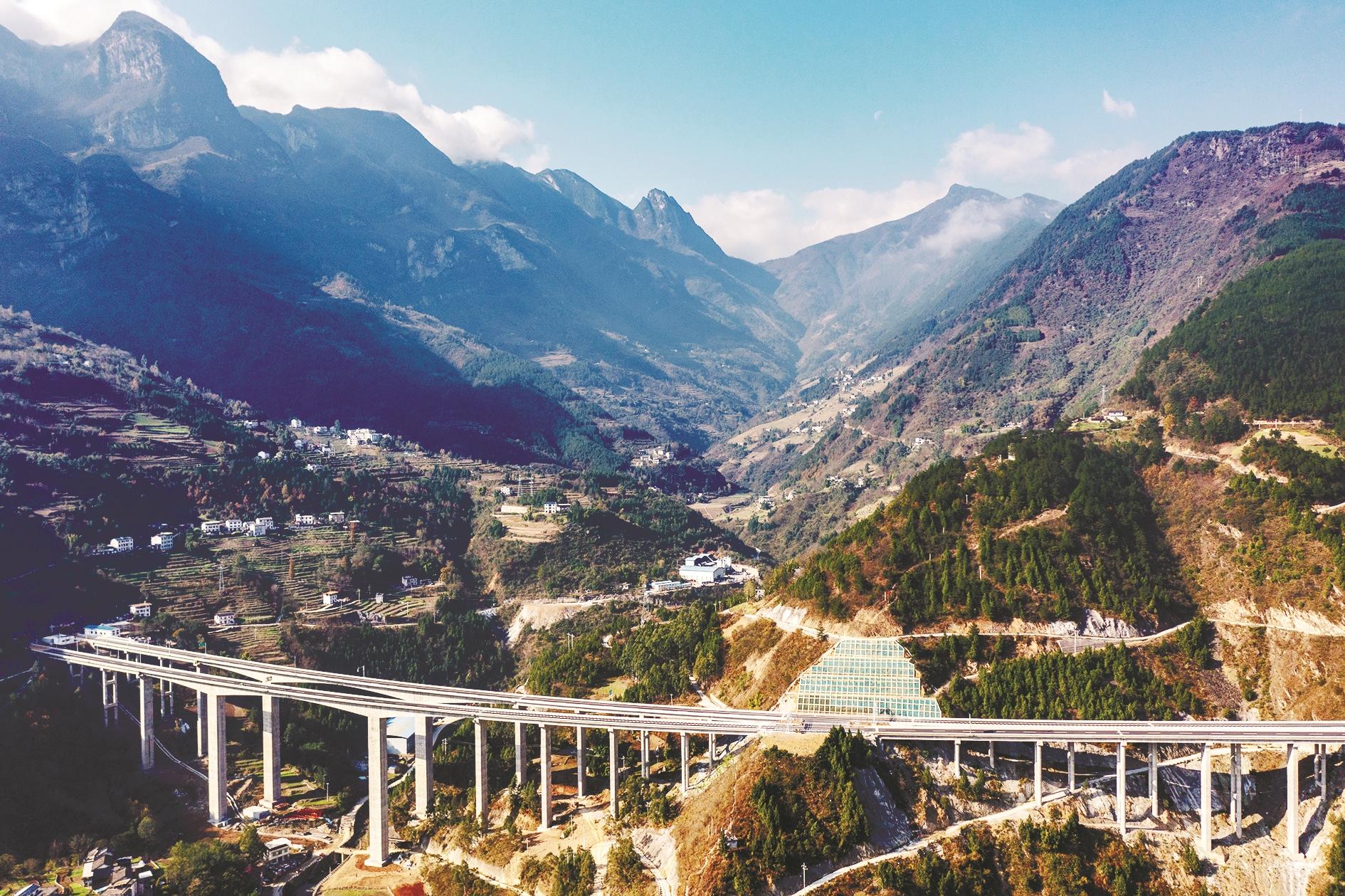 巫镇高速起于巫溪县墨斗城,接重庆奉节至巫溪高速公路止点,向北经巫溪县天星乡、宁厂镇、大河乡、白鹿镇、徐家镇、鱼鳞乡,止于鸡心岭隧道渝陕省界,接陕西平利至镇坪高速公路。该项目全长约48.7公里,采用双向四车道高速公路标准建设,设计速度80公里/小时。 新华社记者 黄伟 摄