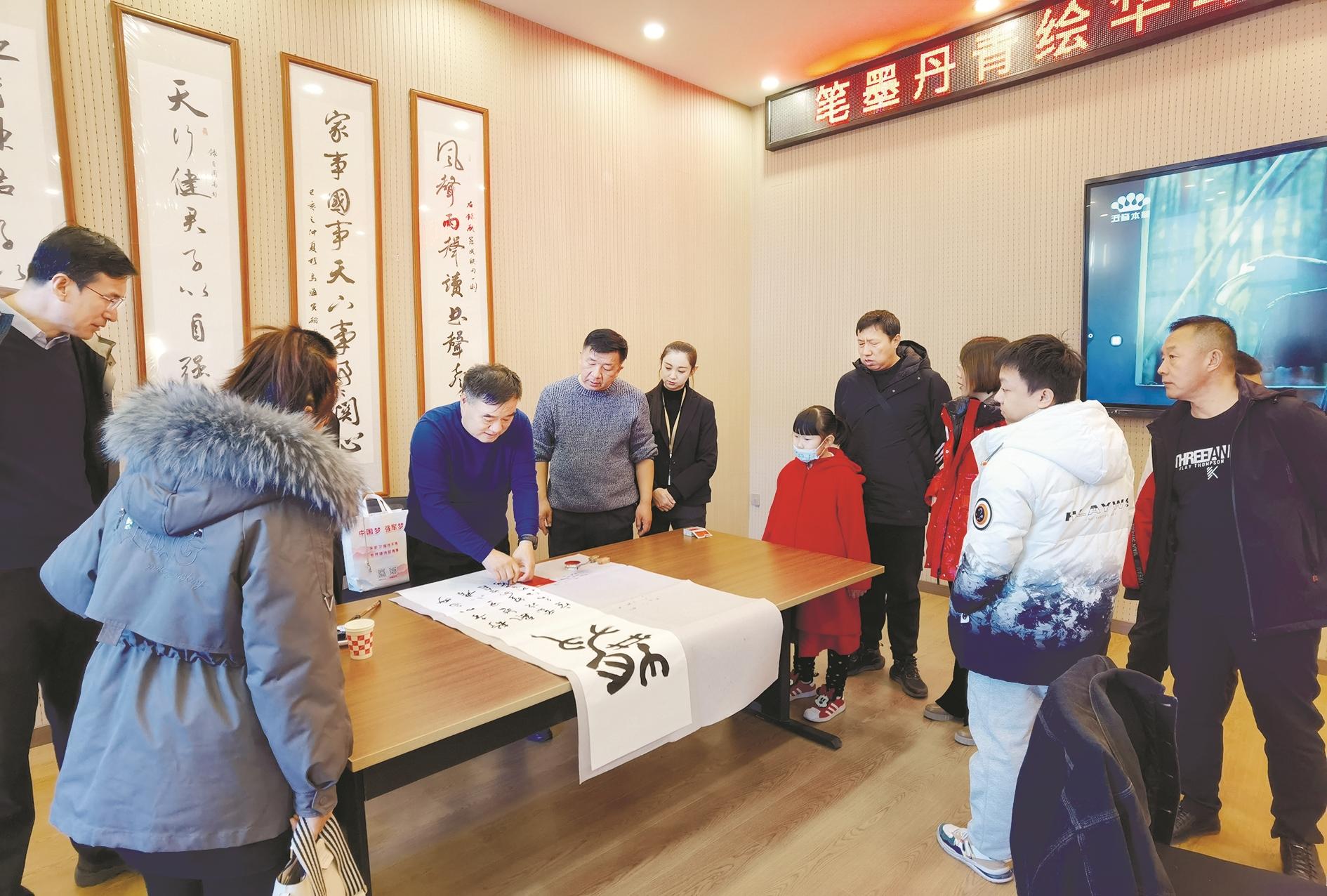 12月2日,由海勃湾区图书馆主办的“笔墨丹青绘华章——名家书法现场创作”活动在图书馆文化客厅进行。活动中,我市书法名家宋永江、雷平挥毫泼墨,绘画名家郭世红、张胤洲现场创作,吸引了不少市民前来,共赴翰墨丹青学习之旅。 (赵荣 摄)