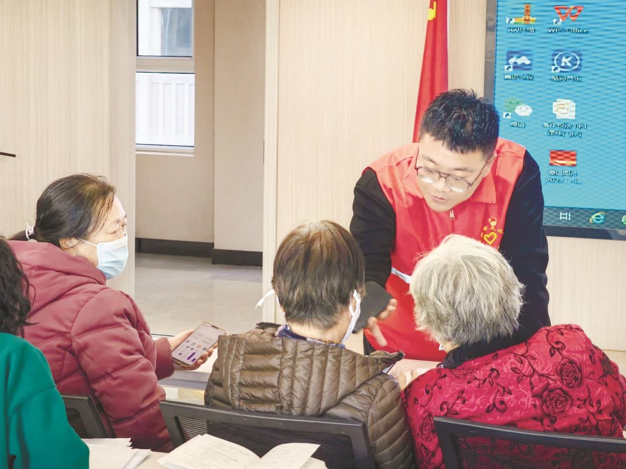 11月30日,市文化馆在海勃湾区海北街道黄河社区开展“玩转智能手机·乐享老年生活”文化志愿培训活动。志愿者就微信和支付宝收付款码的使用、清理手机垃圾文件、屏蔽手机广告等老年人需求最大的内容作了详细演示说明,帮助老年人跨越“数字鸿沟”。 (靳婧 摄)