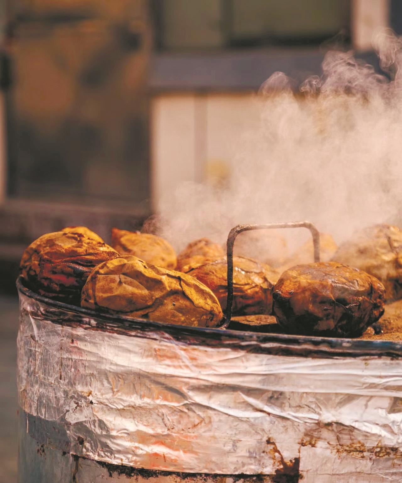 ?傍晚时分,海勃湾区温馨家园小区前热气腾腾的烤红薯引人垂涎。