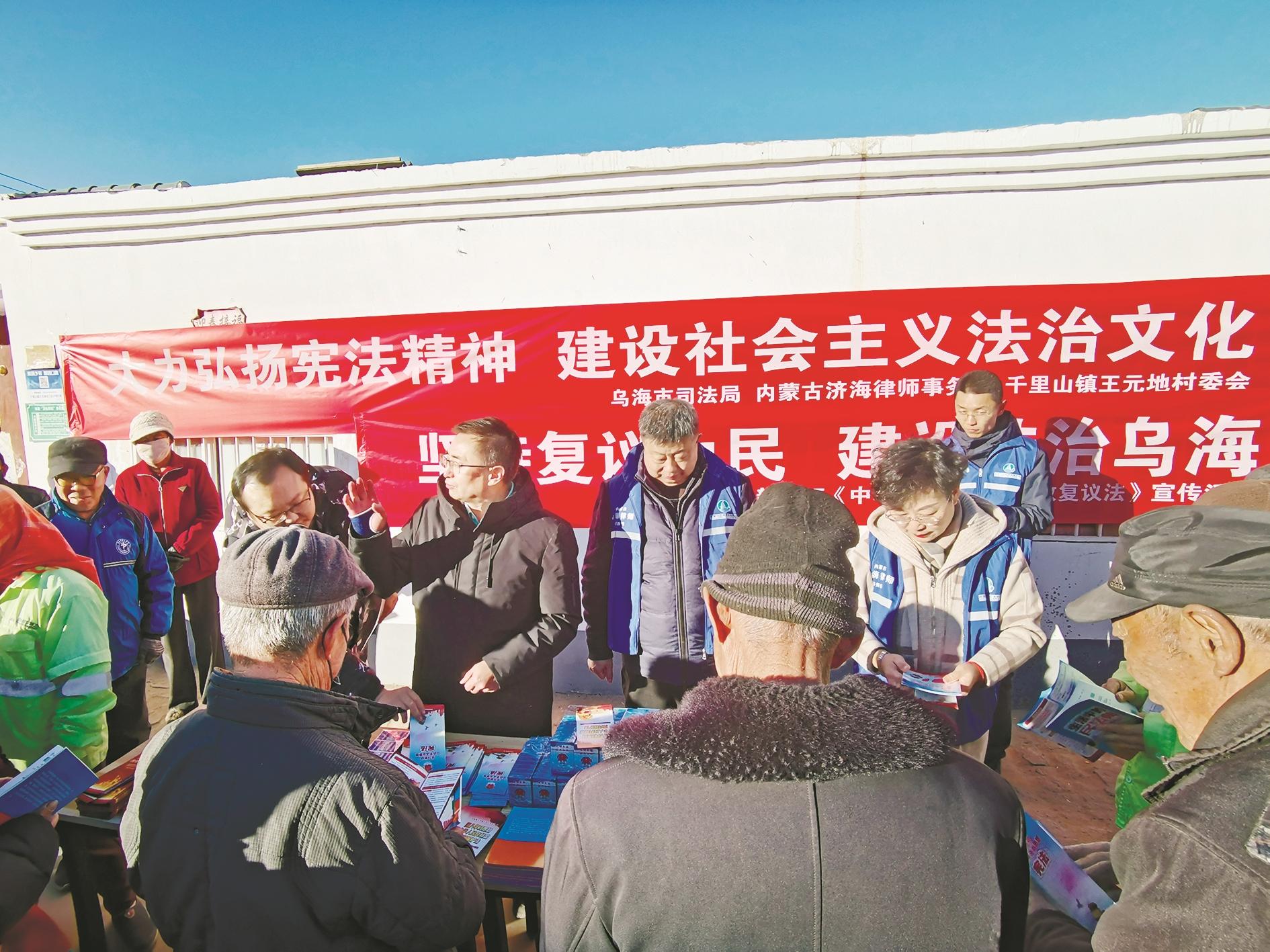 近日,千里山镇王元地村联合市司法局、内蒙古济海律师事务所开展主题为“大力弘扬宪法精神,建设社会主义法治文化”的国家宪法宣传活动。 (毕晓敏 摄)