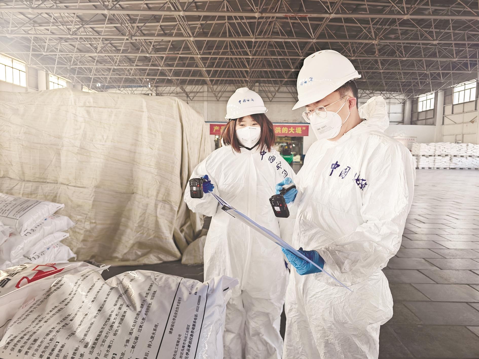 近日,乌海海关关员到内蒙古宜化化工有限公司对出口产品进行查验。今年,乌海海关持续深化“简政放权、放管结合、优化服务”改革,优化跨境贸易营商环境,提高跨境贸易便利化水平,助力企业轻装“出海”。 (王超 摄)