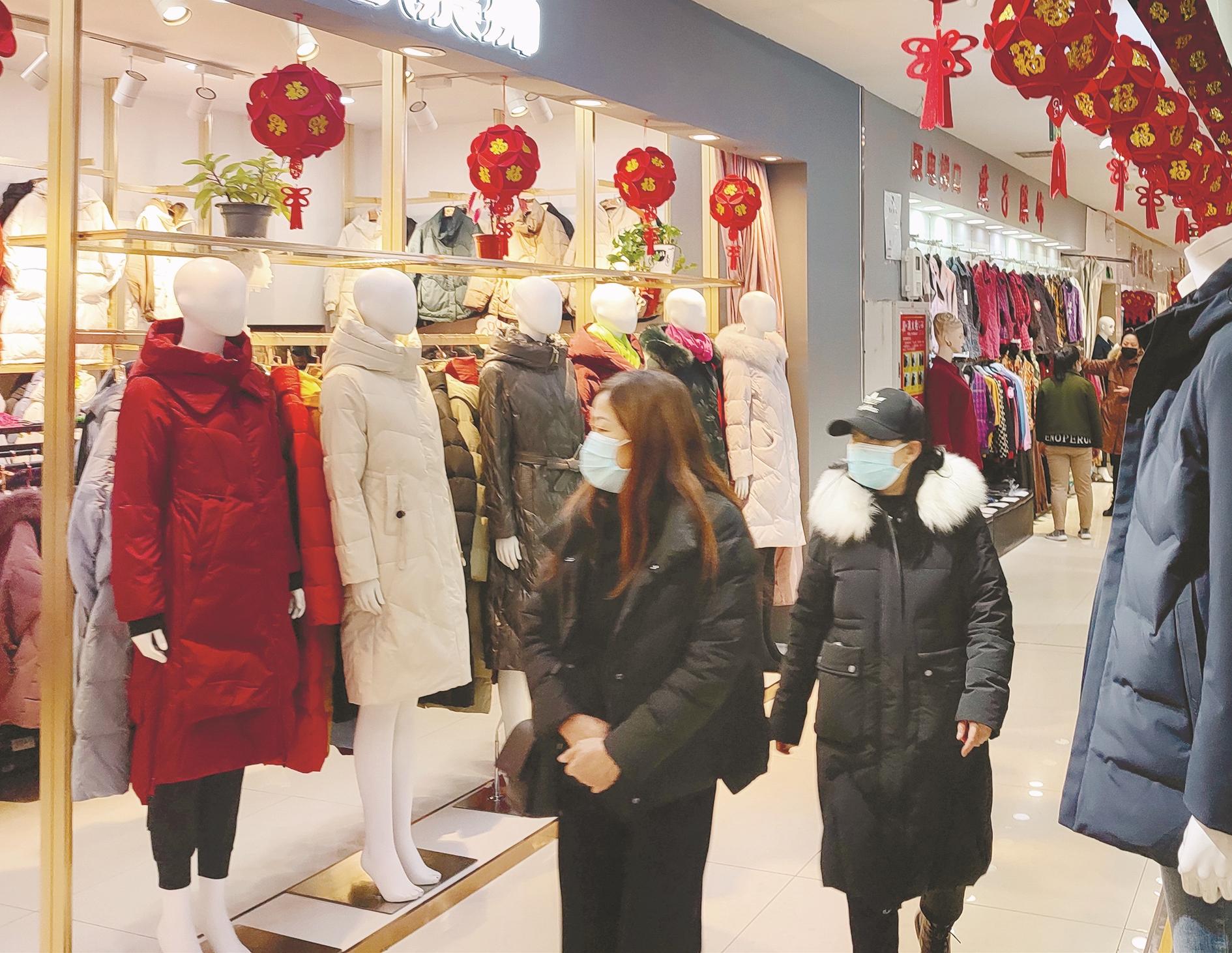 连日来,我市经历了大范围降雪和降温天气,羽绒服、棉衣、派克服等保暖服装派上用场,需求增加,迎来销售小高峰。商家纷纷推出打折、买赠等促销活动,激发消费者购买欲。图为近日,市民在我市一家商场选购羽绒服。(路静 摄)