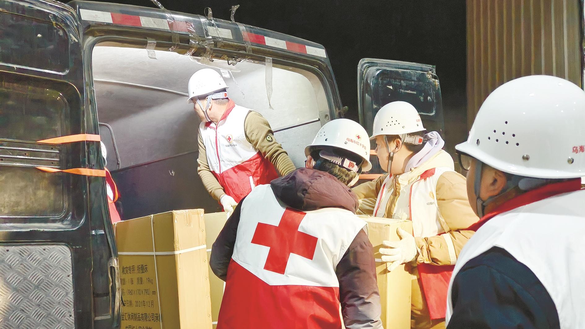 12月18日,甘肃积石山6.2级地震波及邻省青海。19日21时,市红十字会工作人员、市红十字赈济救援队队员响应集合,在零下20℃的气温下,连续3个多小时搬运物资、装车。20日零时30分左右,市红十字会向青海省灾区分批运送的首批100张折叠床顺利装车,寒夜启程,赶往灾区。 (陈佳男 摄)