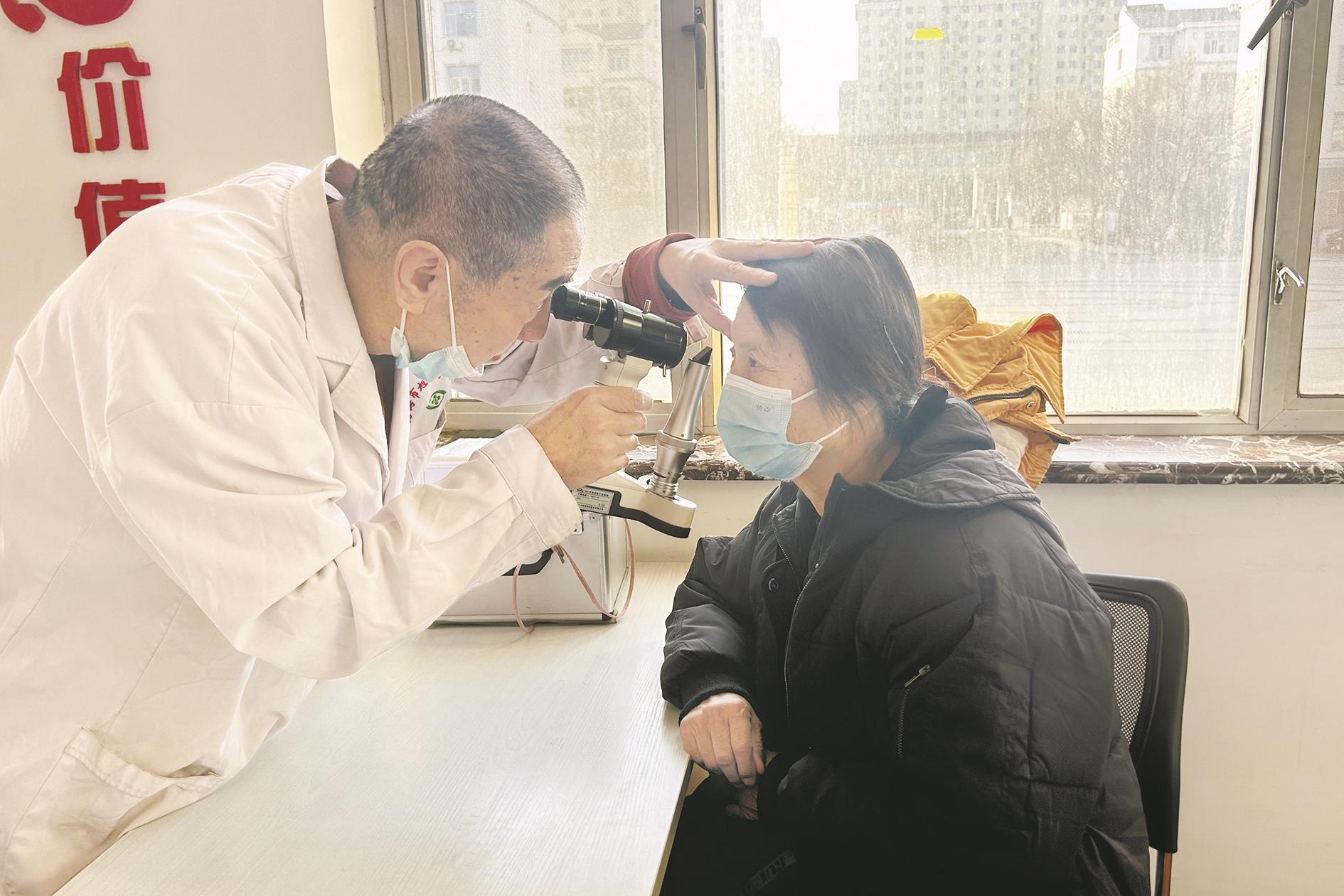 近日,海勃湾区新华街道新海社区新时代文明实践站联合爱心医疗企业开展了健康义诊志愿服务活动。活动中,医务人员为辖区居民量血压、测血糖、检查眼睛等,并宣传普及科学养生知识,倡导居民养成健康生活习惯。(黄建飞 摄)