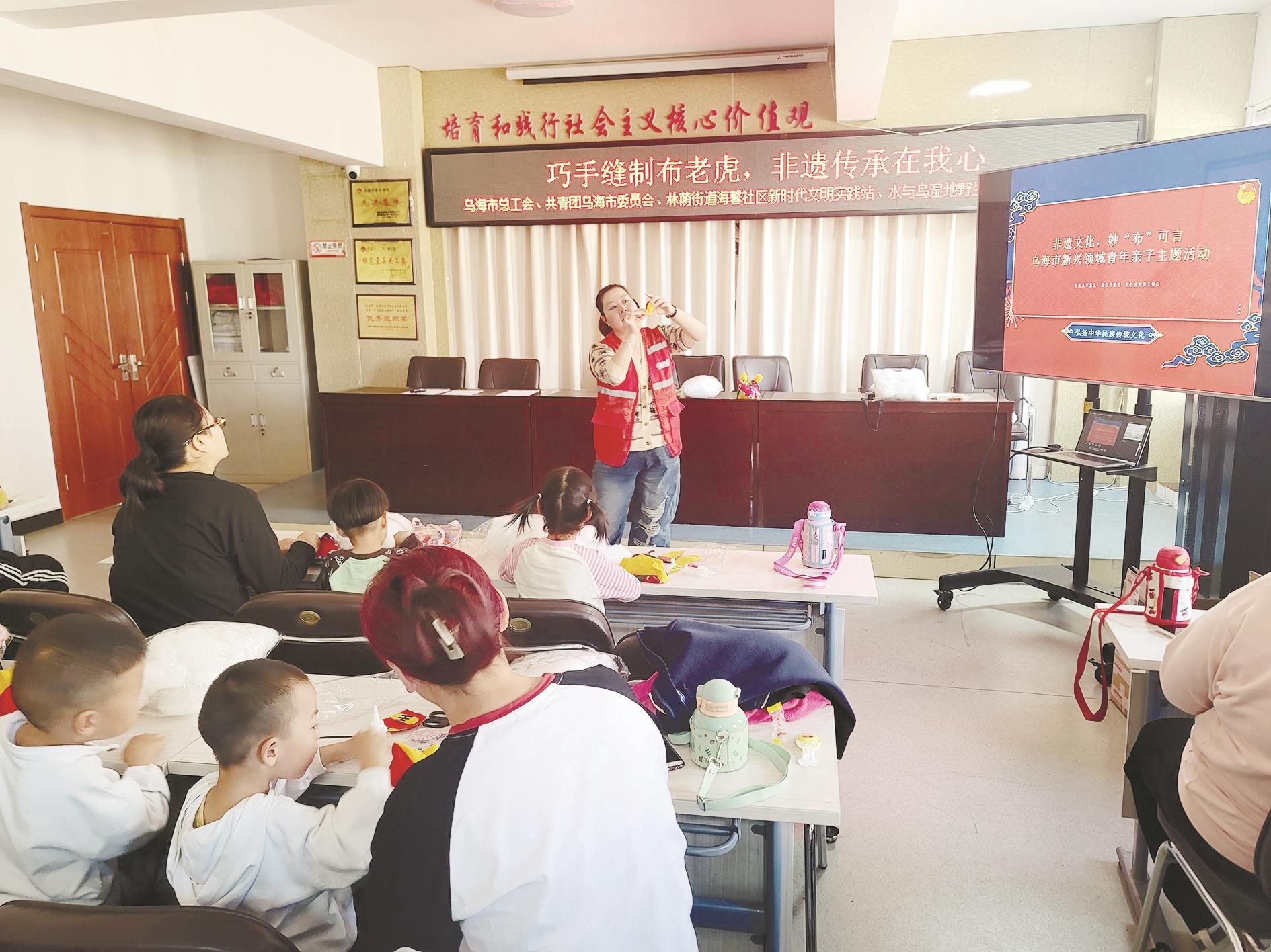 近日,海勃湾区林荫街道海馨社区新时代文明实践站开展“巧手缝制布老虎,非遗传承在我心”亲子活动,通过缝制布艺小老虎的方式提升动手能力,营造家庭和谐氛围。 (段维娜 摄)