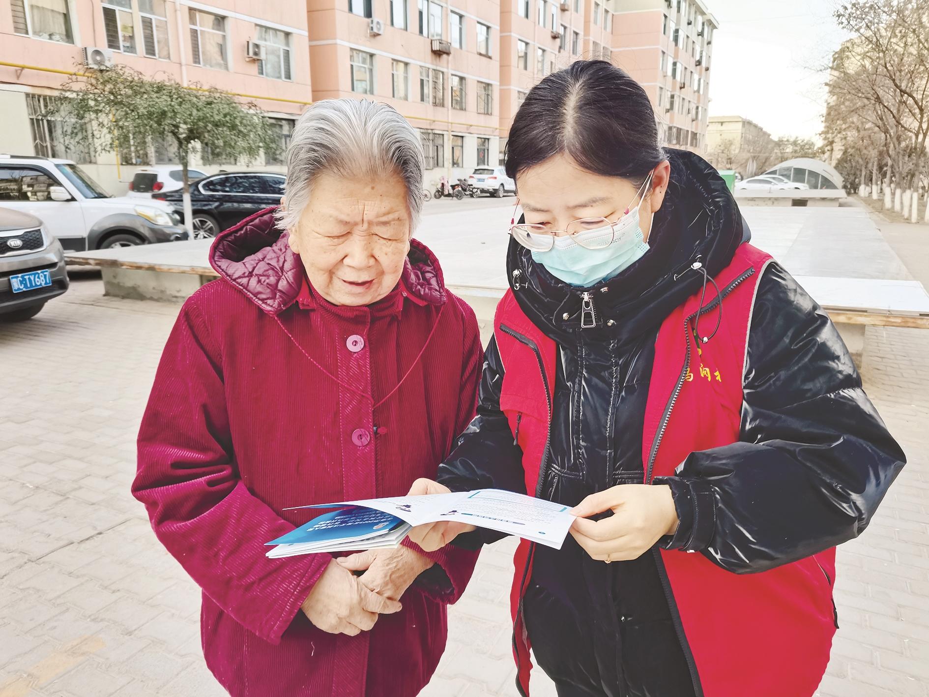 近日,海北街道青山社区组织开展了“惠民服务暖人心 医保宣传进万家”宣传志愿服务活动。网格员向辖区群众详细解读了最新的医疗保险政策,鼓励群众“早参保、勤参保”,共享惠民政策,确保居民应保尽保。 (毕晓敏 摄)