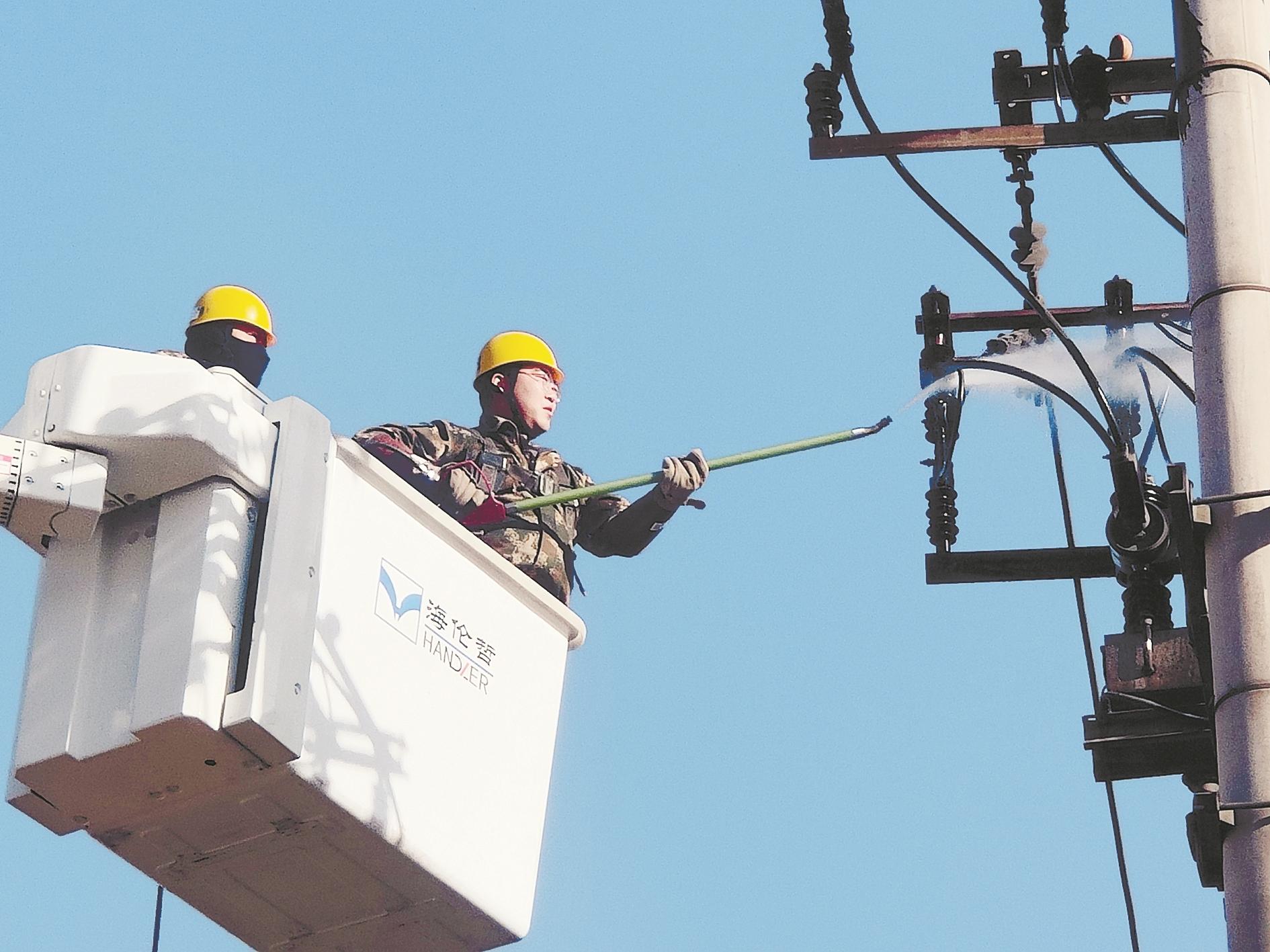 近日,乌海供电公司配电带电作业处配合六五四供电分公司,对海南产业园西来峰站10千伏公乌素东线9105主线鸿鑫支06号杆的断路器、隔离刀闸、支柱绝缘子及绝缘子串,利用10千伏绝缘专用清洗剂进行带电冲洗作业,避免了配电设备因为污闪而发生跳闸事故。(刘佳敏 摄)