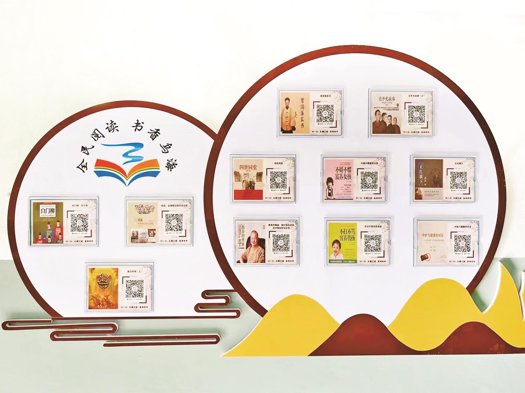 近年来,我市大力推进“书香乌海”建设,深入开展各项全民阅读活动,不断激发市民的读书热情,积极在全社会营造崇尚阅读的良好氛围。图为海南区黄河小区楼道内的扫码阅读区。 (张靖爽 摄)