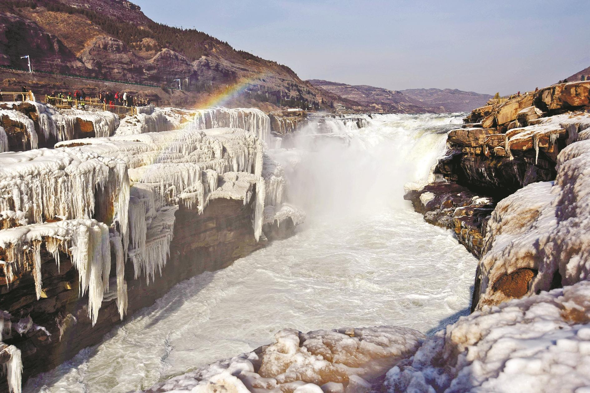 这是1月2日在黄河壶口瀑布景区拍摄的“冰瀑飞虹”。当日,位于山西吉县和陕西宜川县交界的黄河壶口瀑布出现“冰瀑飞虹”景观。 新华社发(吕桂明 摄)