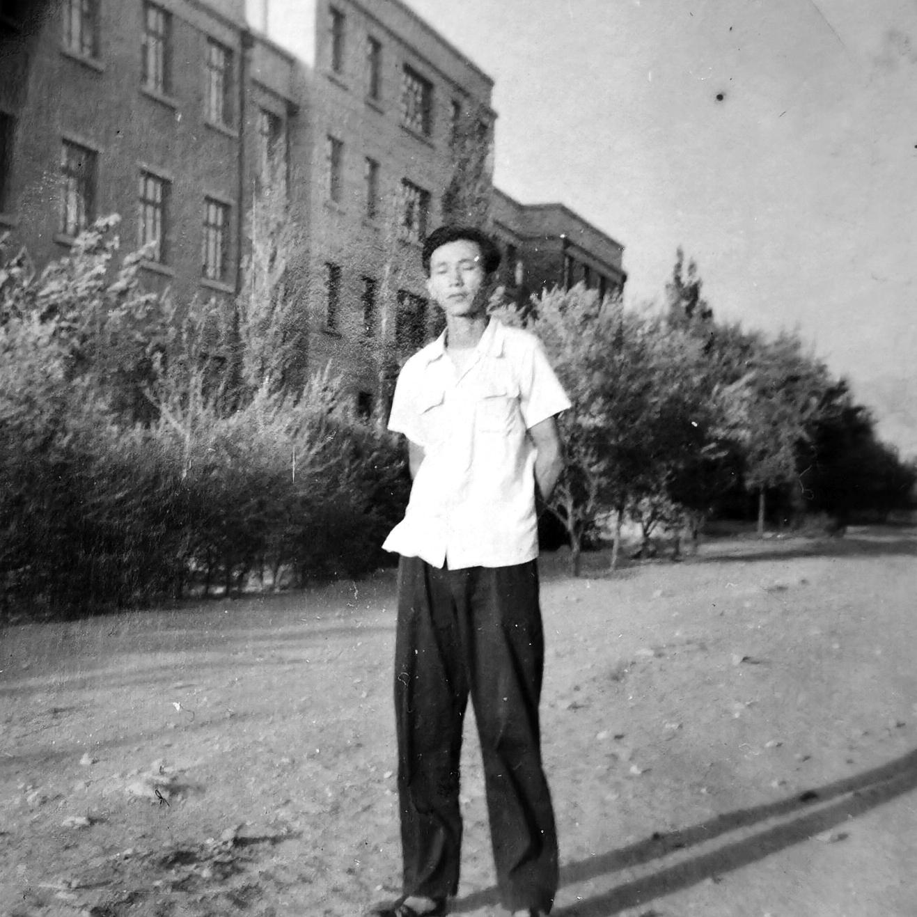 1965年,在海勃湾市人民委员会机关办公楼前留影。(杨星灿提供)