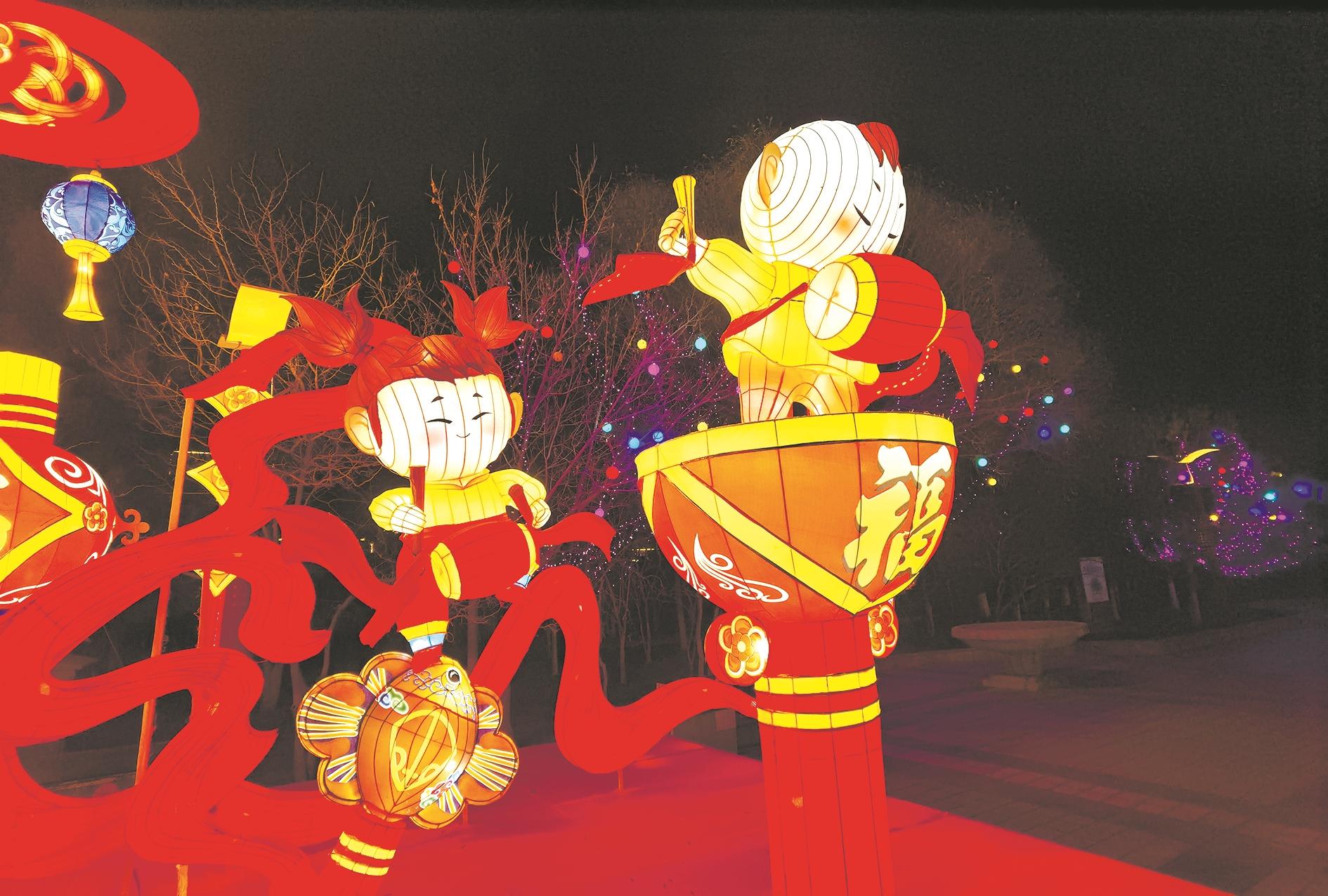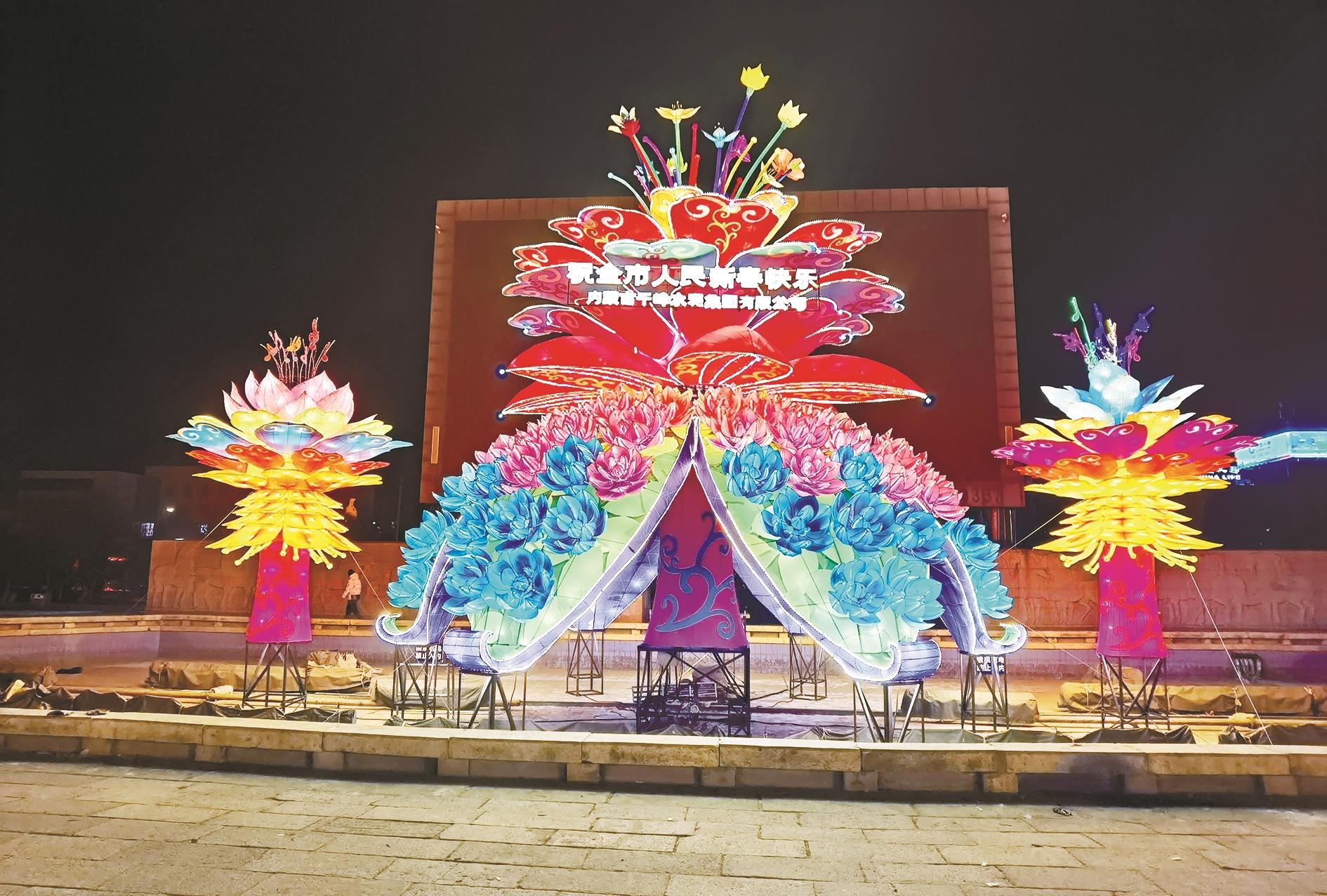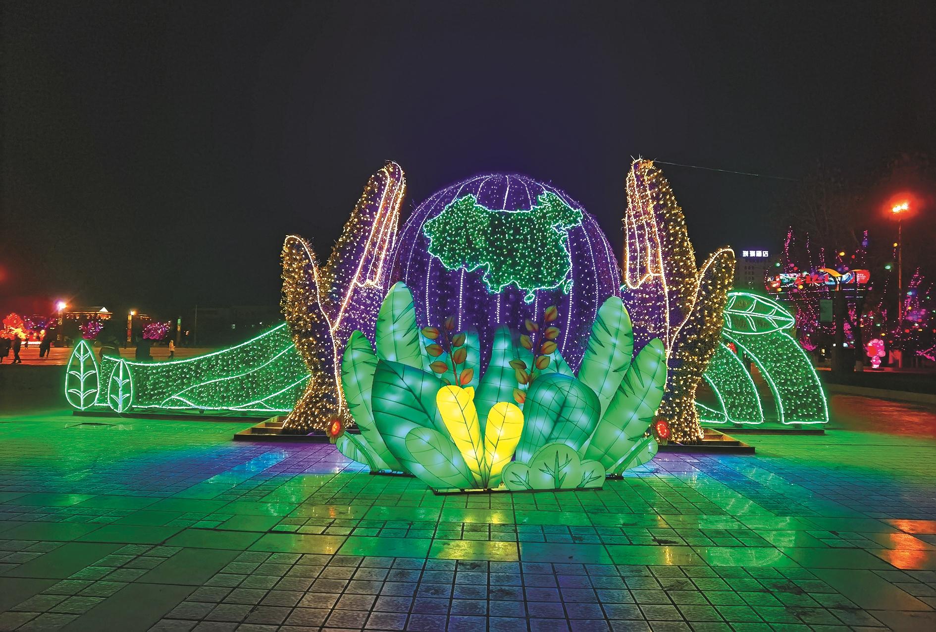 走进市人民广场,仿佛来到了灯光艺术的海洋。北面入口,中央是以“大美乌海”、花篮、新春祝福插画为主题的灯组,祝福伟大祖国繁荣富强;东侧围绕“狮城乌海”展开,将战旗、战马、长城结合,满天星灯带勾勒出恢宏的气势;西面以灯带装饰草雕,色调和谐统一,用满天星点缀主体,在展现和谐自然的同时,强调绿色协调发展。“前段时间就看到广场上工人们加班加点忙碌组装着这些灯光组合,没想到效果杠杠的。”正驻足拍照的市民郝欣指着名为《潮玩猜歌》的灯组告诉记者,彩灯与互动巧妙结合,在观灯的同时,人们根据音乐旋律猜歌名,不仅受到孩子们的喜爱,不少成人也参与其中。“彩灯互动让节日气氛更加喜庆,给人们带来了满满的祝福。”她说。