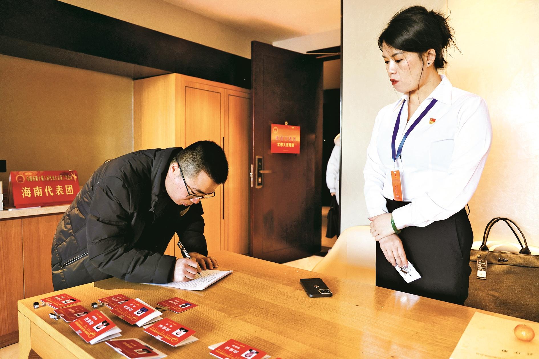 人大代表报到。(高瑞鹏 摄)