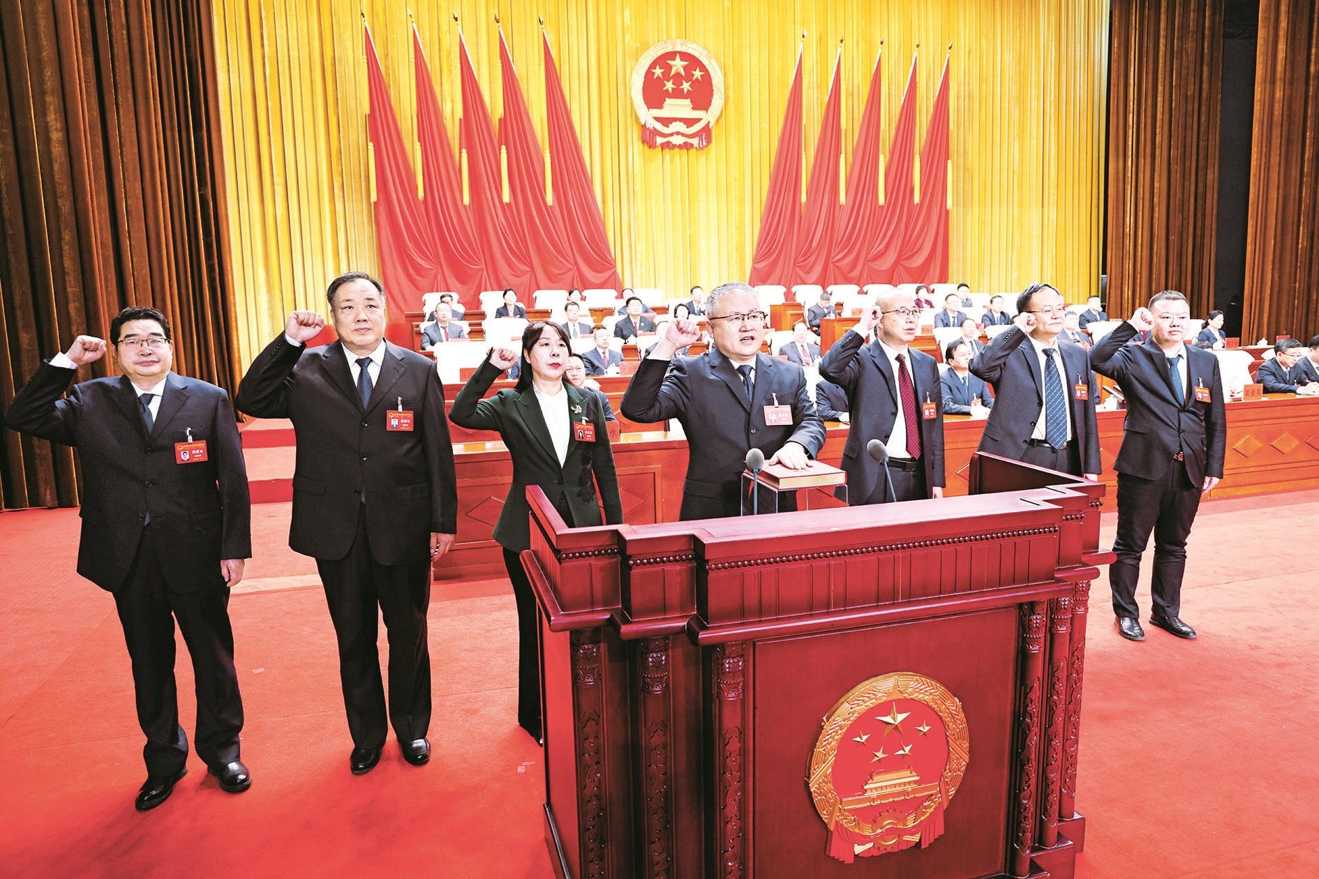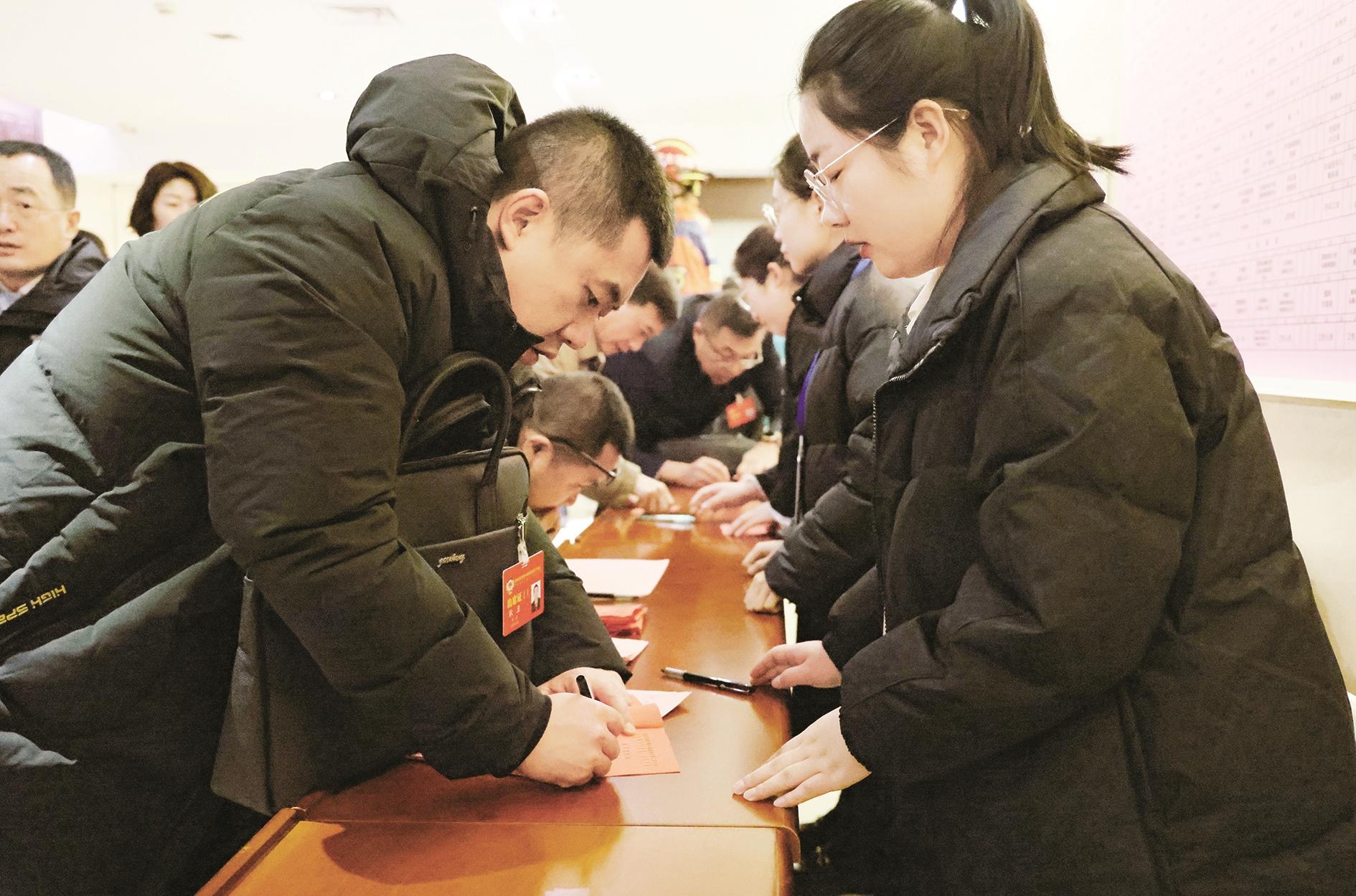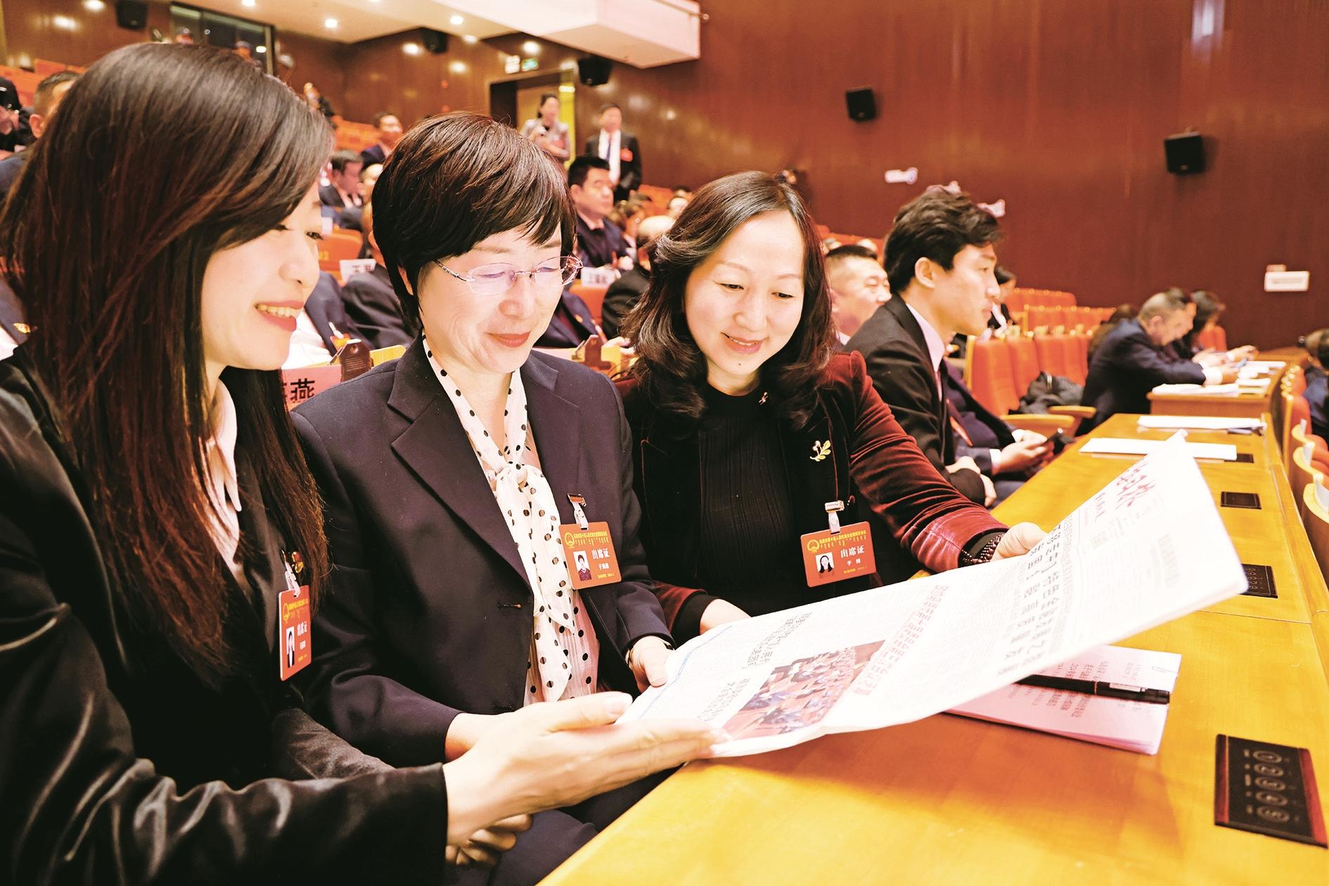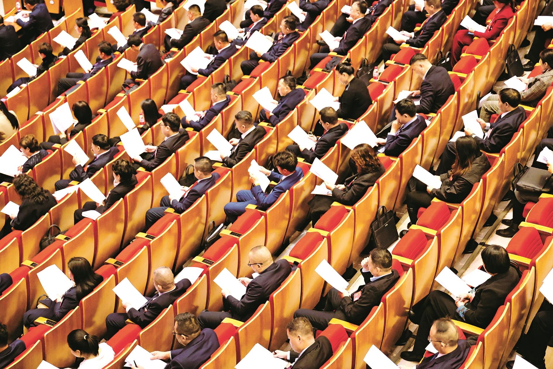 人大代表聆听市人大常委会工作报告。 (高瑞鹏 摄)