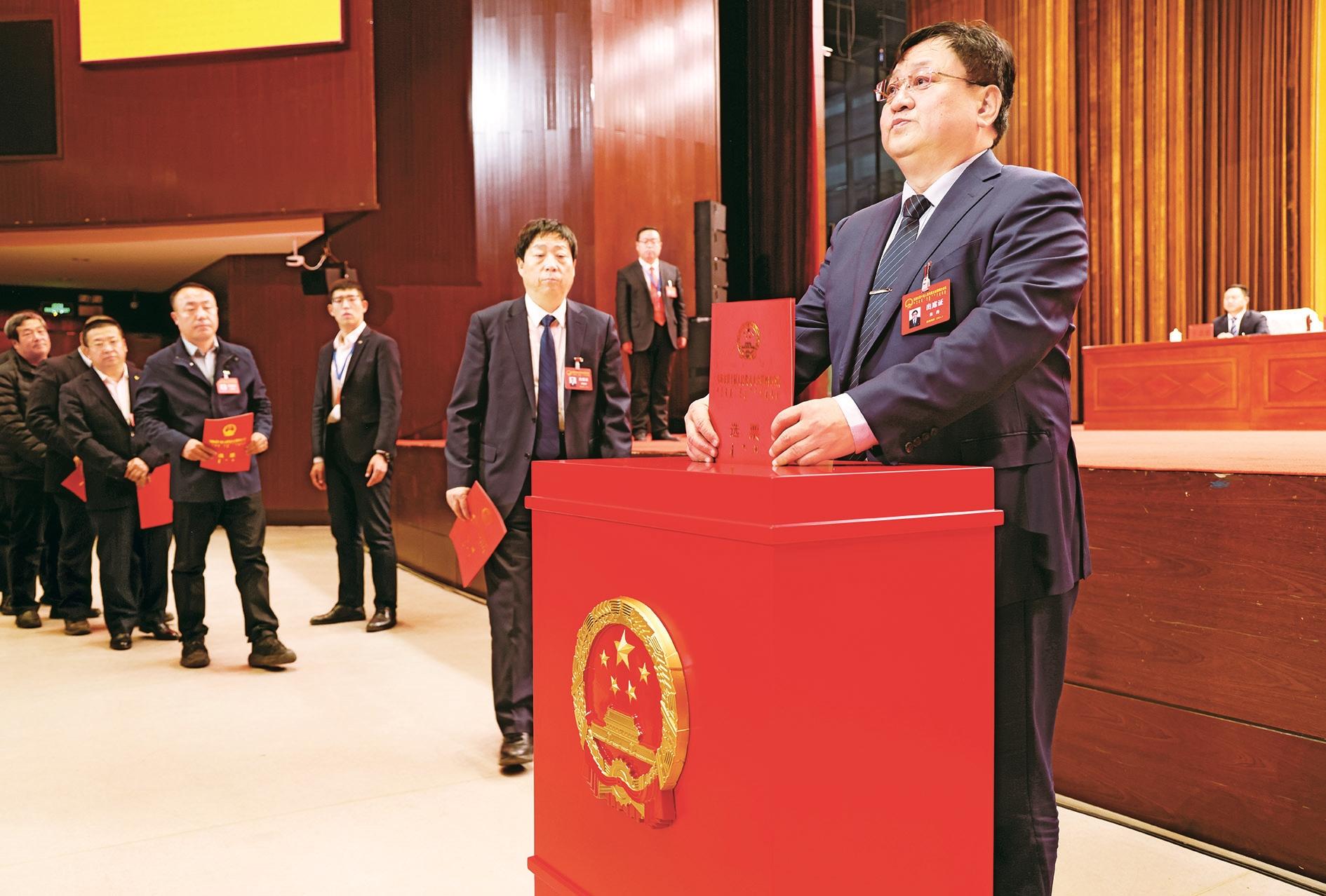 人大代表投下庄严一票。 (高瑞鹏 摄)