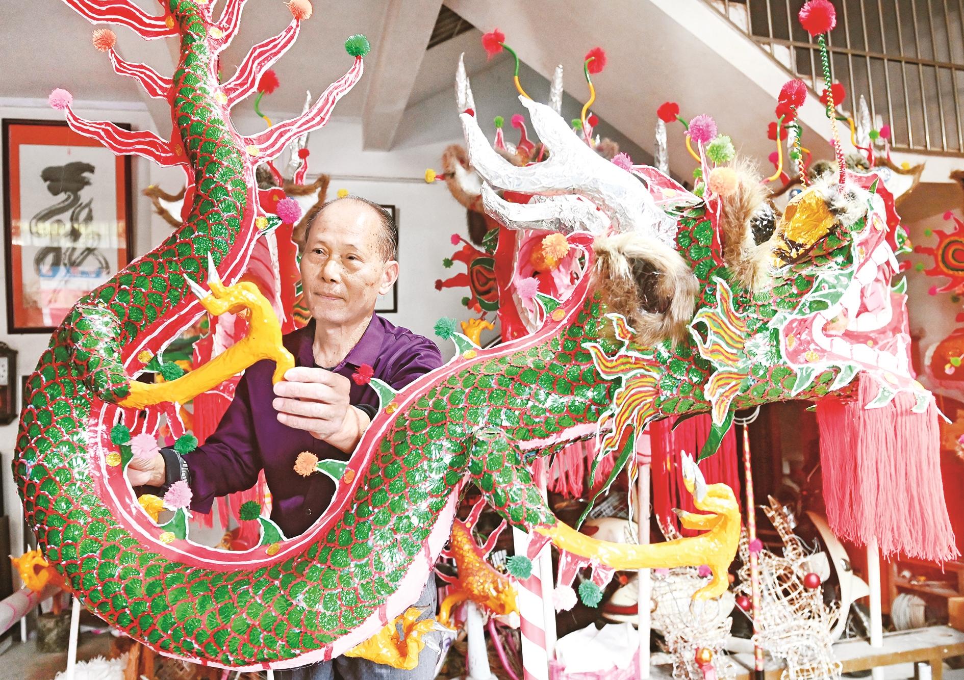 1月16日,在广西宾阳县宾州镇三联街,邹玉特在装饰龙爪。