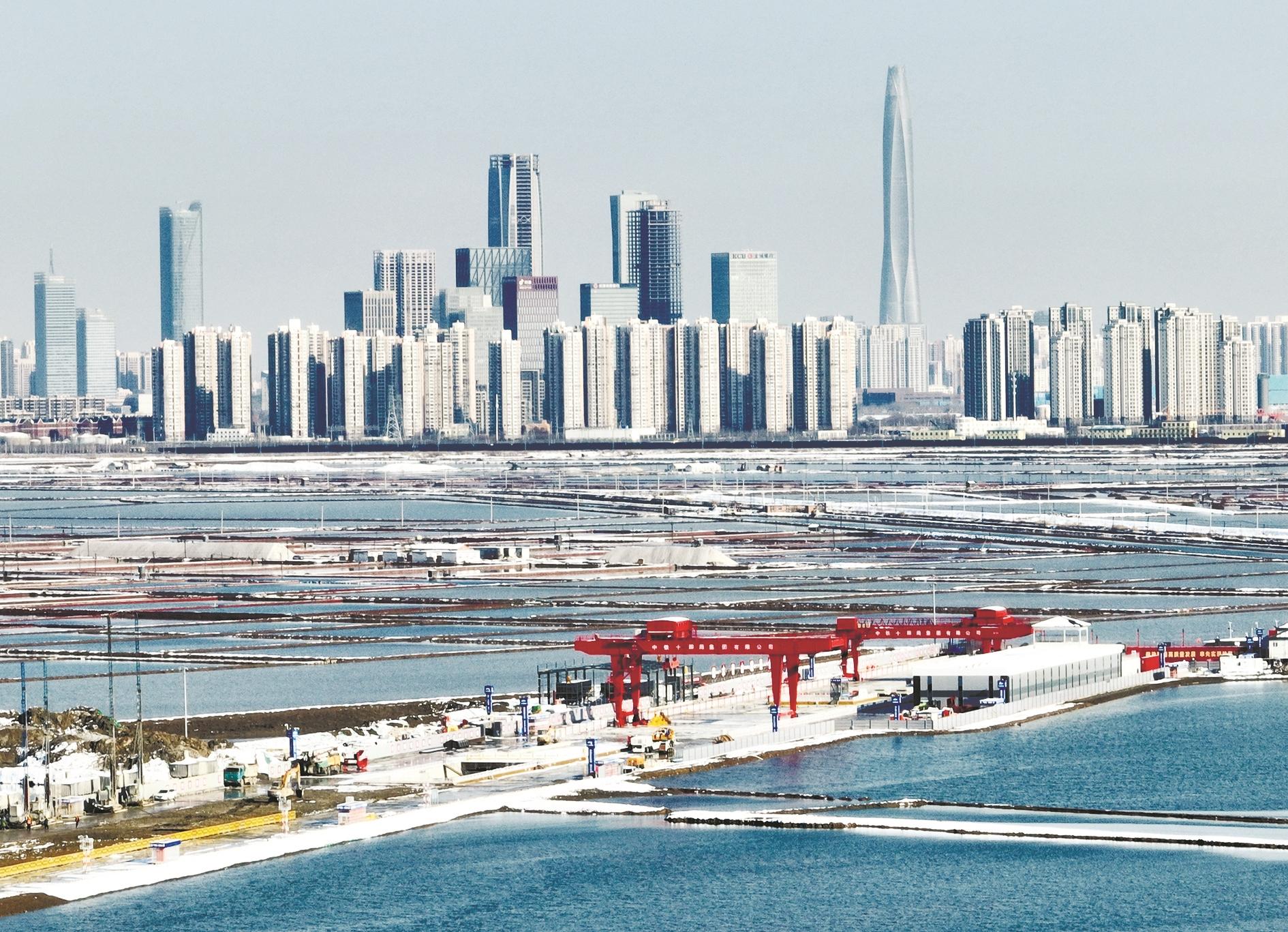 1月18日拍摄的盾构机始发现场。当日,由中铁十四局承建的津潍高铁津沽海河隧道超大直径盾构机“津城一号”顺利始发,标志着京津冀地区开挖直径最大、掘进距离最长的高铁盾构隧道正式开始掘进。津潍高铁起自天津枢纽滨海站,终至济青高铁潍坊北站,正线长度348.9公里,设计时速350公里。