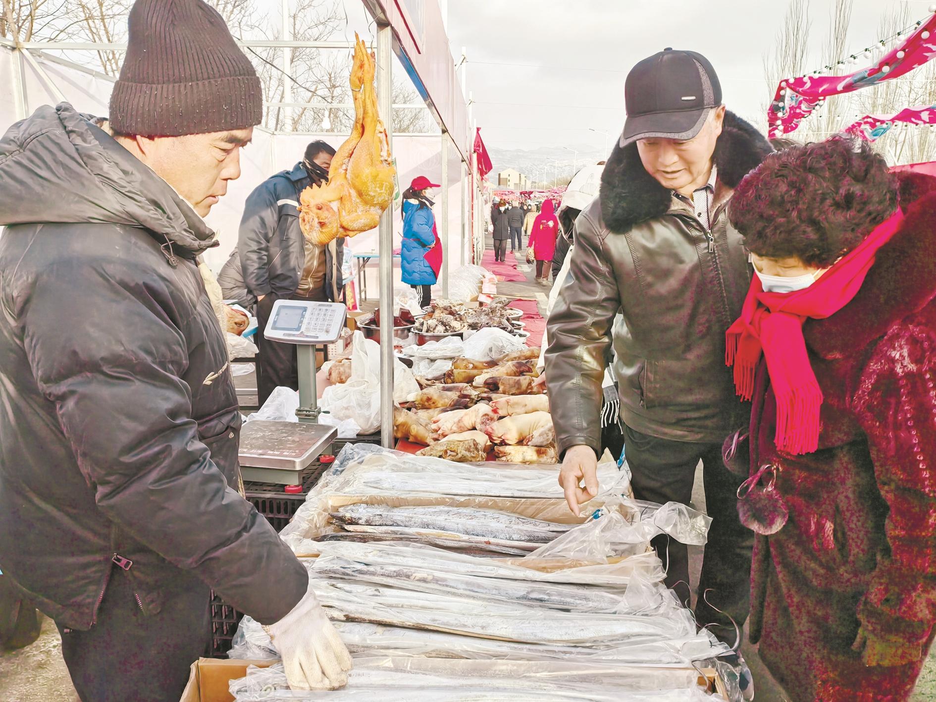 “这家的虾、那一家的羊肉和羊下水看着都不错,我买了不少,今天回去就尝尝。”市民文淑娜表示,除了肉类,她还从一旁的水果摊上买了不少砂糖橘和苹果,两只手都拎满了东西。她说:“我看见那边还有卖对联和过年装饰物的,一会儿准备再去逛逛,把家里的装饰品也换一换。”