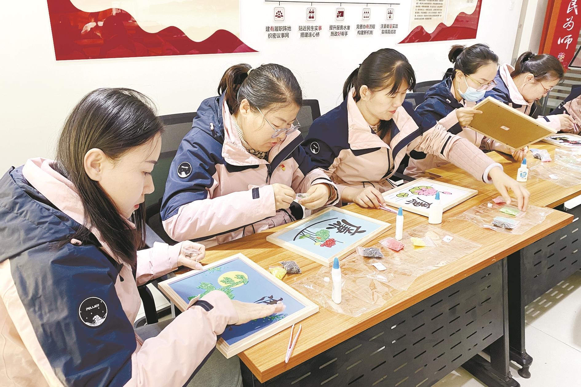 近日,海勃湾区滨河街道滨河社区党委开展了“巧手绘廉洁 非遗扬清风”五谷粮食画制作活动,辖区党员群众学习五谷粮食画历史由来、艺术特色、制作过程等,制作出各式各样的廉政主题五谷粮食画,进一步加深党员群众对廉洁文化的理解,营造崇清尚廉的良好氛围。(黄建飞 摄)