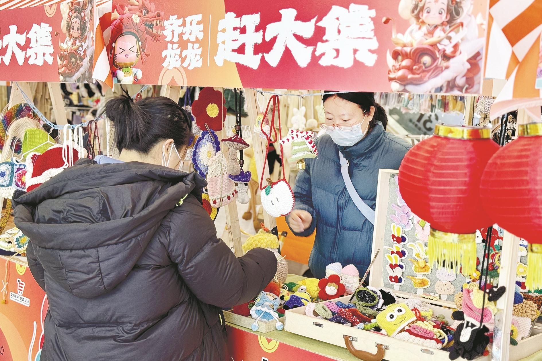 为全面激发消费市场活力,满足群众节日期间物质文化需求,近日,海勃湾区滨河街道湖东社区联合乌海摩尔城举办了“龙腾‘湖’跃 睦邻暖‘东’”年货节。活动中人们在乌海摩尔城一层大厅赶大集、置办年货,看非遗文化表演,体验新入驻店铺。(黄建飞 摄)