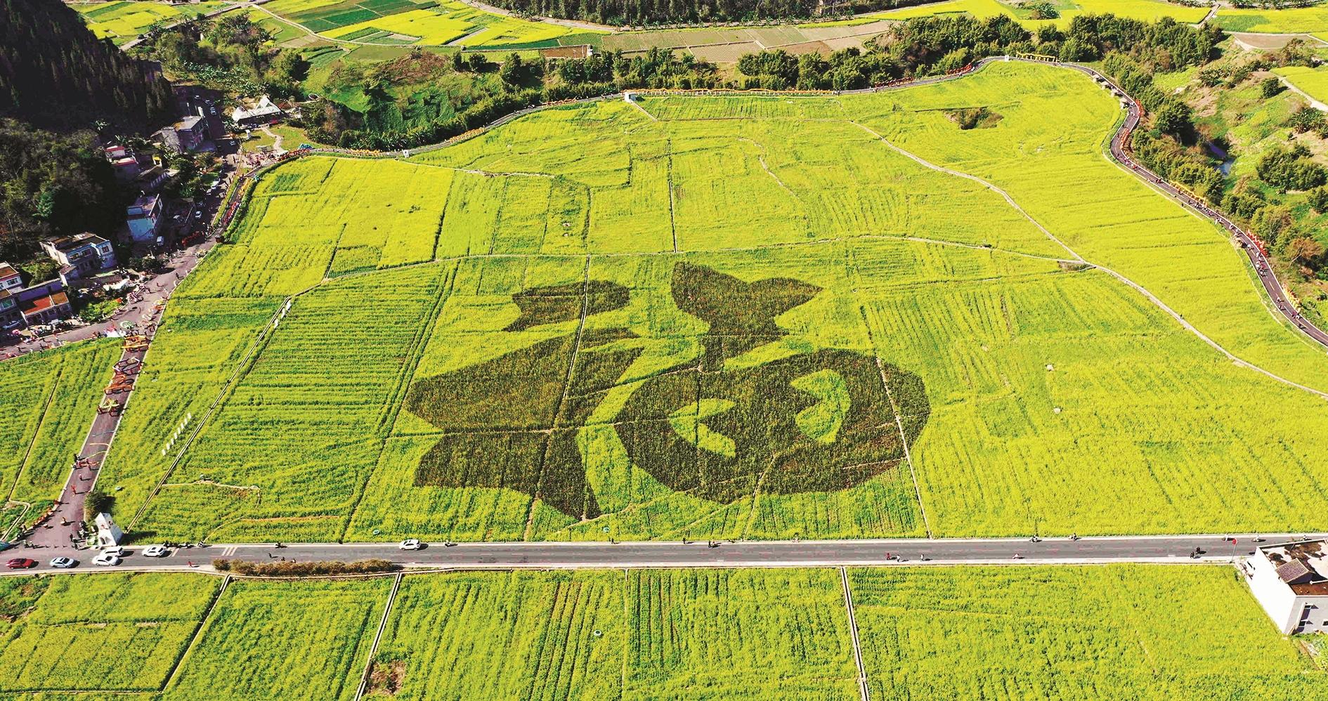 2月4日拍摄的兴义市万峰林景区油菜花田景色(无人机照片)。时值立春,贵州省兴义市第二届万峰林油菜花节在万峰林景区开幕,盛开的油菜花和丰富的民俗表演吸引众多市民和游客前来观赏,感受田园春色。