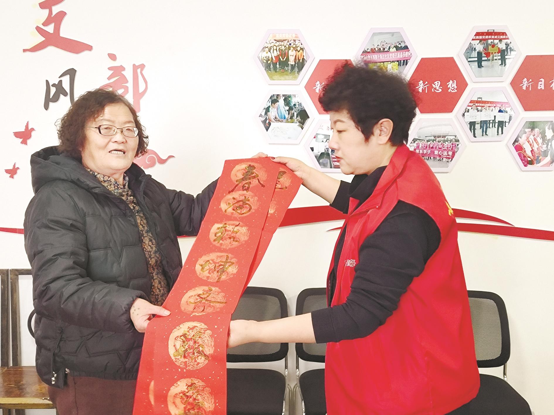 1月30日,海勃湾区新华西街道养老综合服务中心举办“笔墨添福迎新春”活动。活动现场,书法爱好者挥毫泼墨,为居民写下一副副寓意吉祥的春联,展现书法艺术的魅力,传递美好祝愿。 (李浩 摄)