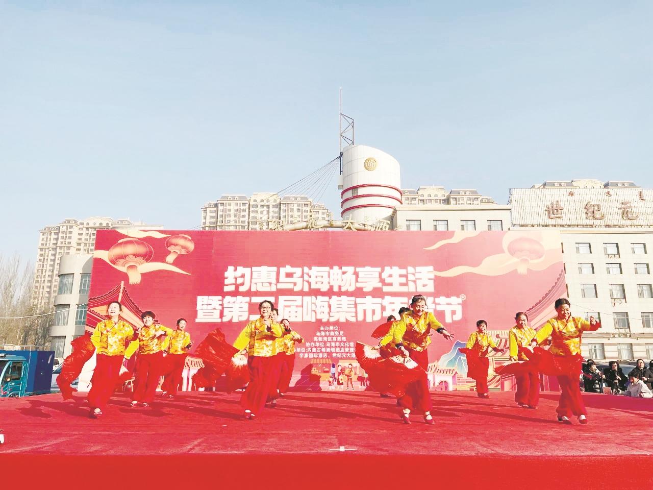1月25日至29日,“约惠乌海 畅享生活”暨第二届嗨集市年货节举办,精彩纷呈的文化演出活动为年货节增添了欢乐氛围,满足群众精神文化需求。图为舞蹈《开门红》。 (靳婧 摄)