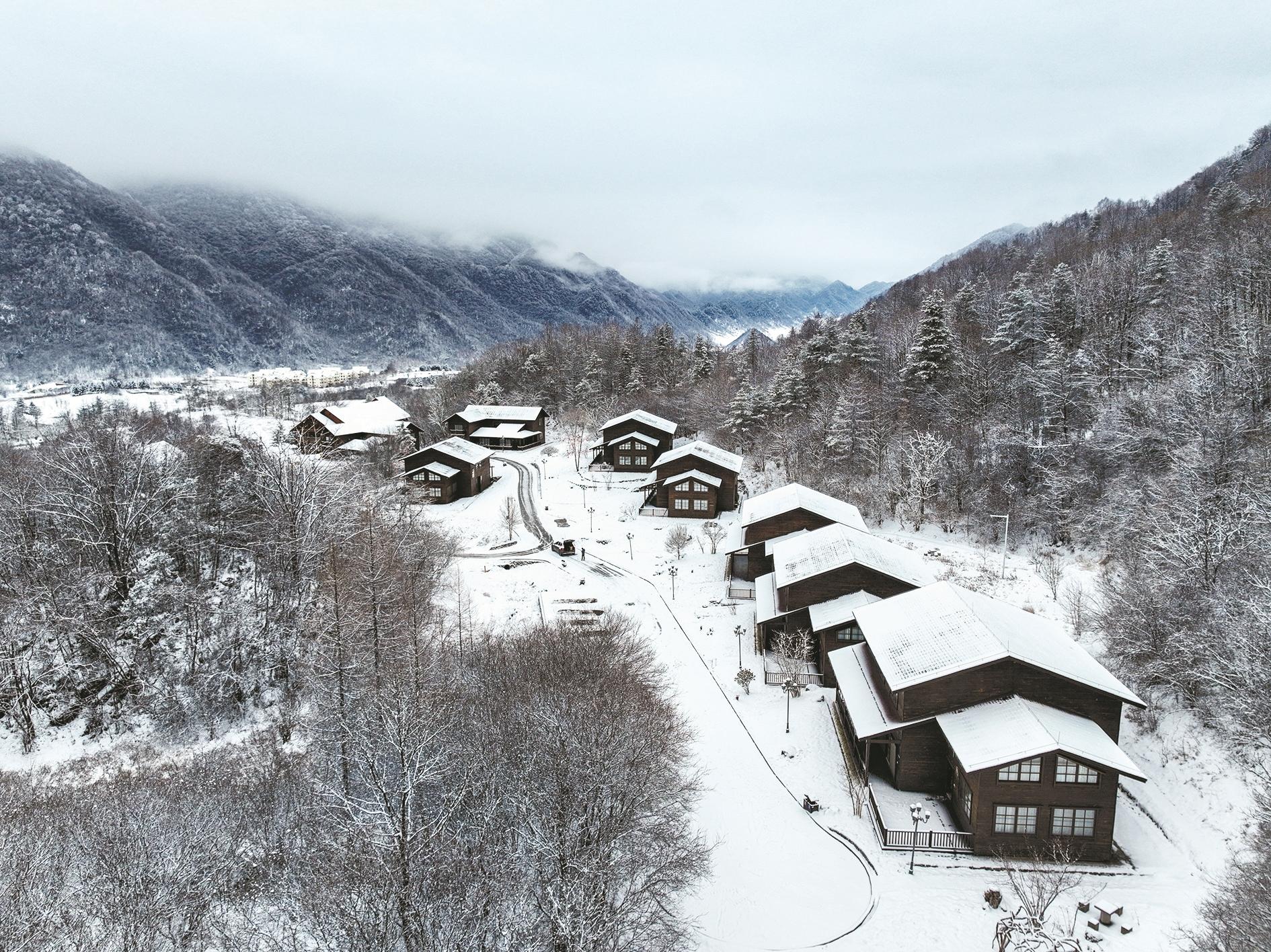这是2月3日在重庆市巫溪县文峰镇一带拍摄的雪后风光(无人机照片)。受近期强冷空气影响,地处秦巴山区腹地的重庆市巫溪县高海拔地区迎来降雪。