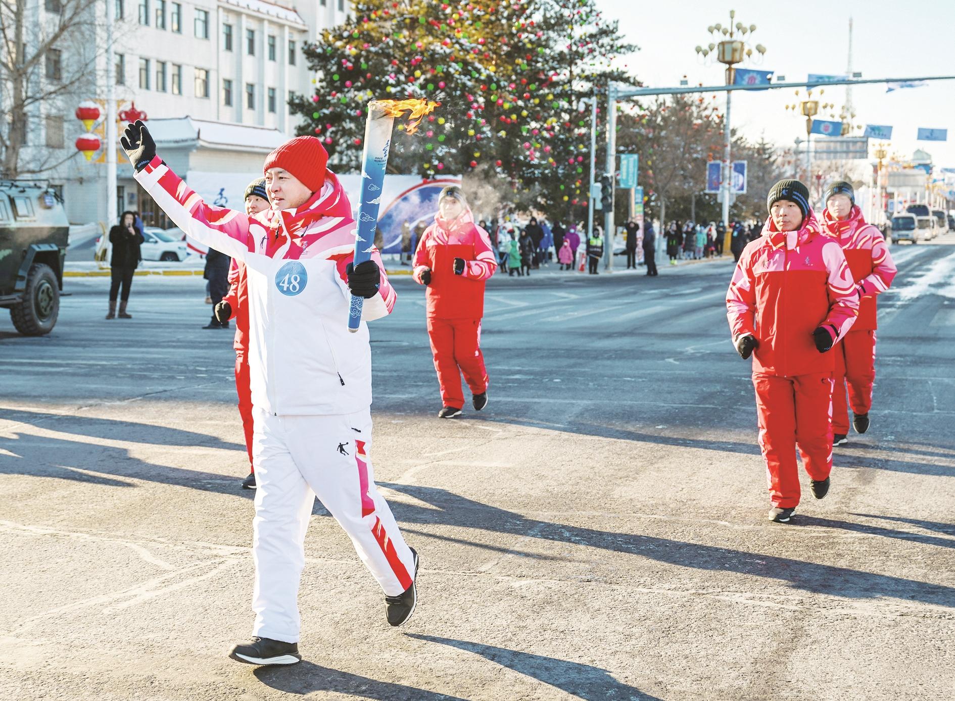 当日,第十四届全国冬季运动会火炬传递活动在内蒙古自治区呼伦贝尔市进行,这是“十四冬”开幕前的最后一次火炬传递。本次火炬传递从满洲里国门景区出发,途经陈巴尔虎旗,最终到达“十四冬”开、闭幕式和冰上项目举办地海拉尔,共有65位火炬手参与传递,全程230公里,用时近6个小时。“十四冬”火种于2019年5月1日在内蒙古乌兰浩特市“五一会址”成功采集,随后在内蒙古12个盟市传递。2月17日,“十四冬”将在呼伦贝尔市正式开幕。新华社记者 彭源 摄
