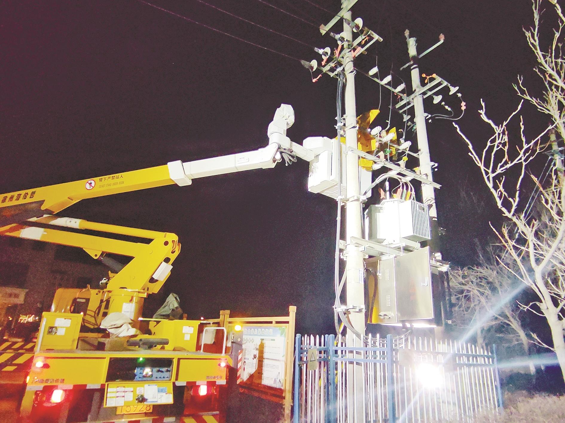 1月30日凌晨,永安变电站10千伏北工业园线9109主线新村分支24号杆中相高压熔断器烧毁,导致200多户煤改电居民取暖设备无法使用。接到通知后,乌海配电带电作业处抢修组迅速赶往作业现场,做好安全防护措施,开展抢修作业。凌晨2时许,抢修任务圆满完成,保障了居民可靠用电。(王硕 摄)