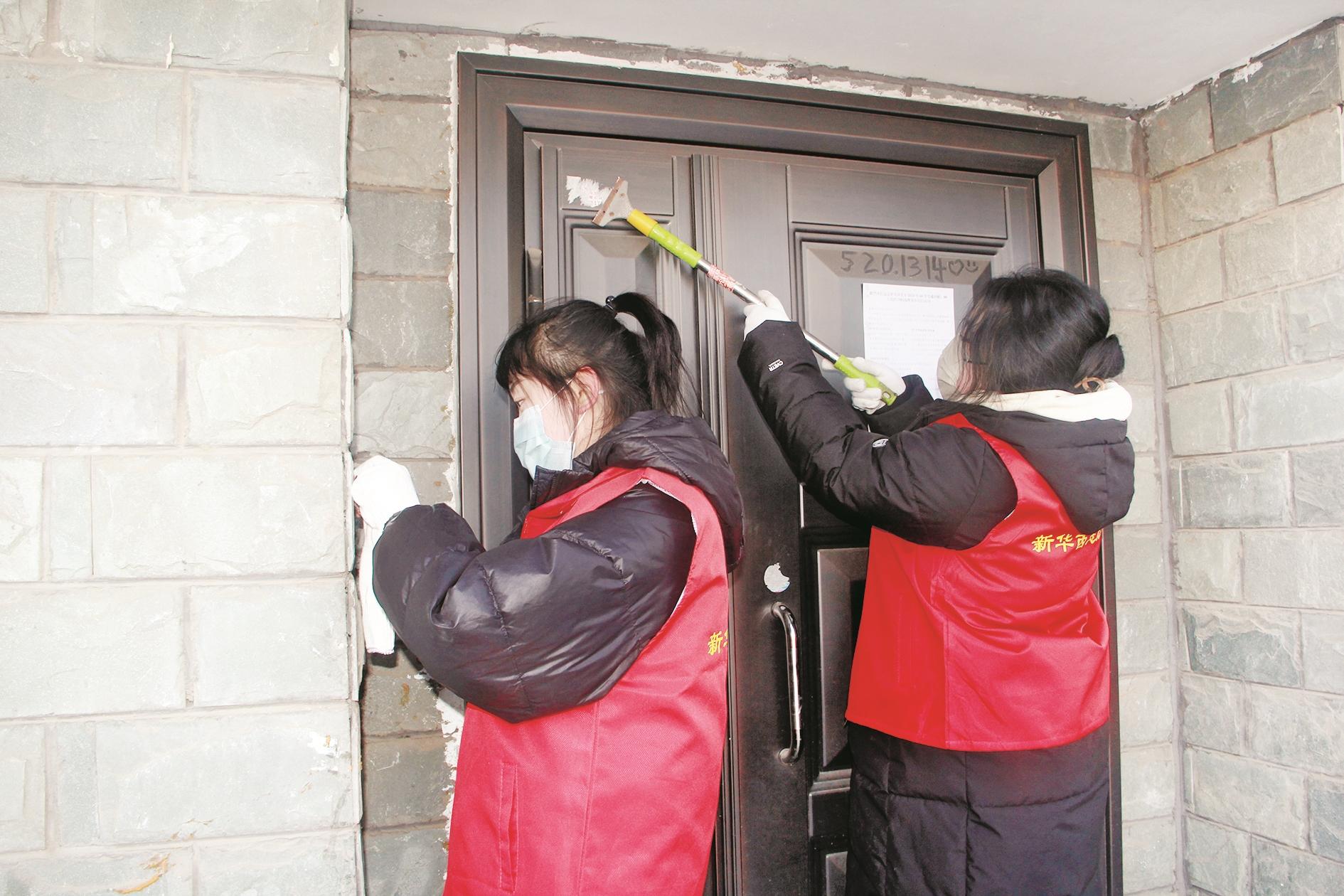 2月4日,记者在海勃湾区盛世华庭北小区看到,志愿者们手拿铁锹、扫把、夹子等工具,齐心协力清除小区内的积雪和垃圾杂物,使小区面貌焕然一新。“快过年了,社区组织志愿者跟居民们一起大扫除,挂起了红灯笼,干净又喜气,年味儿一下子就有了。”居民王彩霞说。