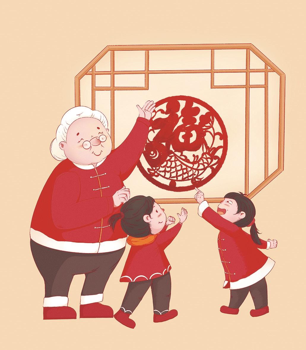 从我记事起,母亲就是剪窗花的高手。她裁剪的刀法稳、准、巧,镂空的技法甚是奇。母亲在年关忙上一阵子,剪的窗花有花鸟鱼,还剪“福禄寿禧”和“丰年求祥”“五谷丰登”“人畜兴旺”,贴在家里年味十足。这些寓意吉祥的窗花,把春节烘托得喜气又红火。