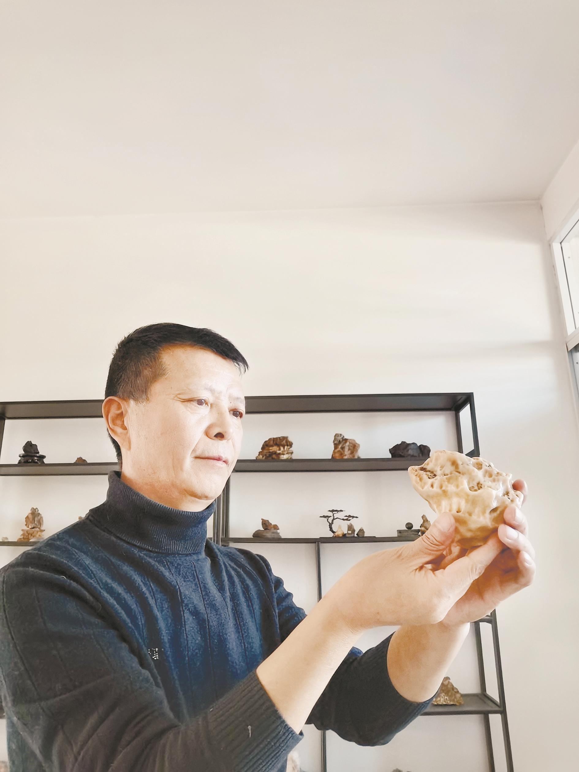 “我收藏奇石主要是为了怡情,通过观赏奇石让自己放松心情,同时发现奇石背后的文化内涵,弘扬我市的赏石文化。”贾宗镇说。