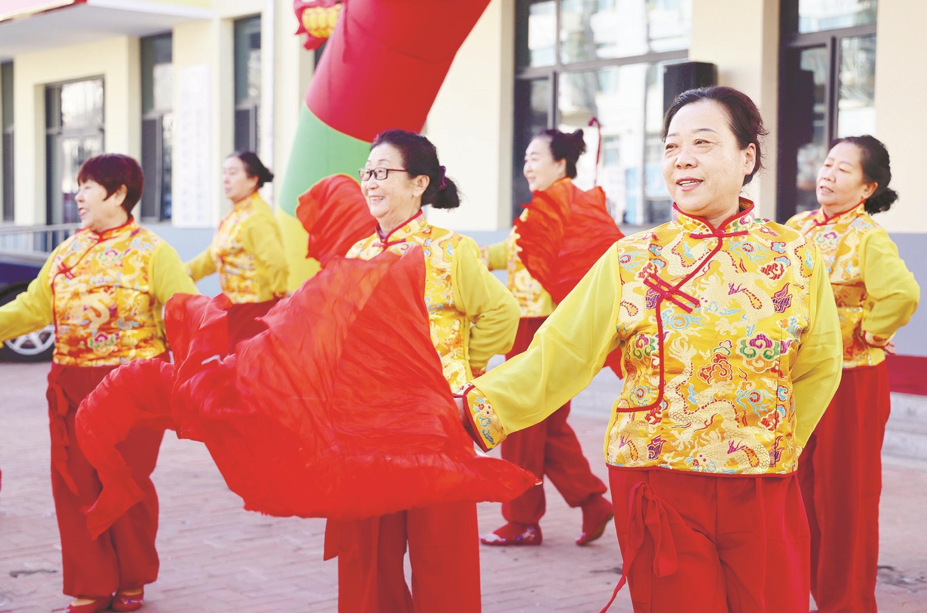 近日,海勃湾区凤凰岭街道长青社区组织秧歌队走进社区,为辖区居民送上一场热闹的秧歌表演。喜庆热闹的表演透着浓浓的年味儿,将新春的祝福传递给了现场每一位观众。(高瑞鹏 摄)