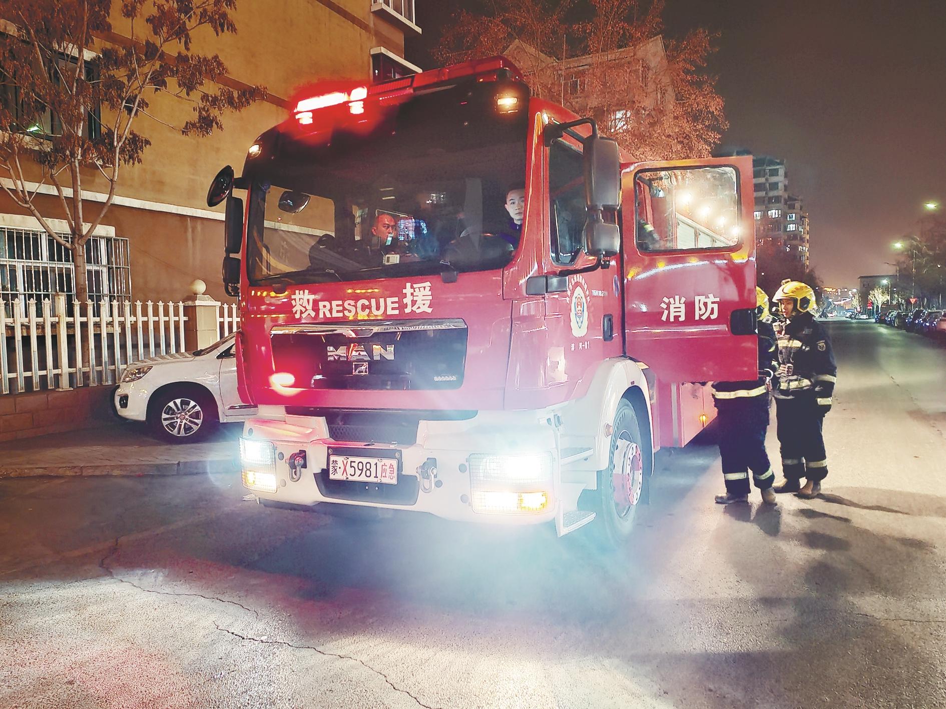 消防员除夕夜出警护卫市民安全。(张楚研 摄)