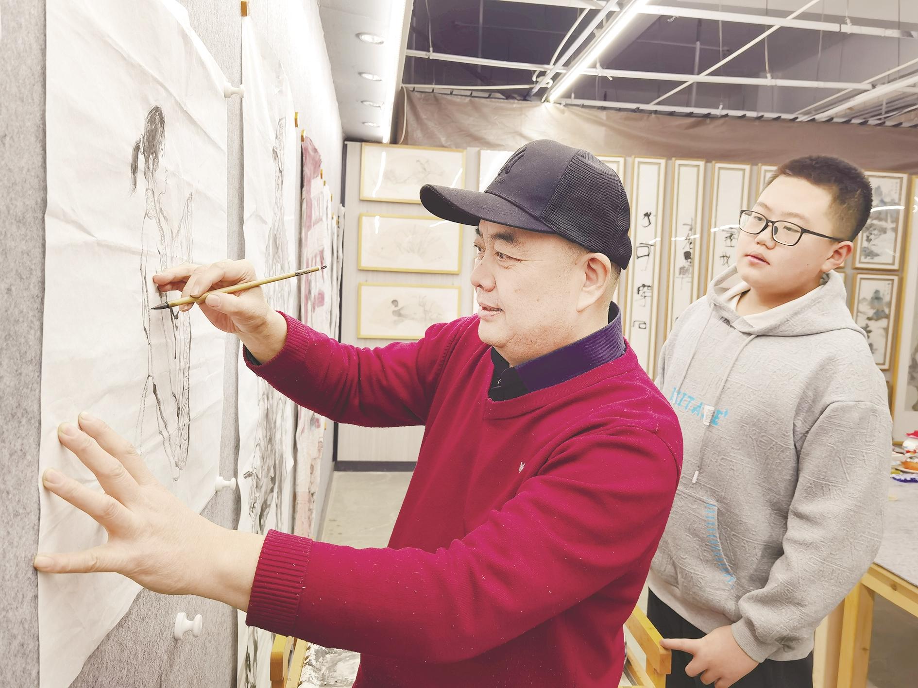 从素描、速写、色彩等绘画基础学起。在这里,他欣赏过《少女与桃子》《森林之歌》《晚钟》《拾穗者》等世界名画,感受画作中画家想要表达的思想感情。“在欣赏《面包》这幅名作时,饥饿的孩子抓着母亲,我们仅仅从母亲的背影中就能感受到她的无奈无助。当老师深入讲解时,不仅感动了全班同学,更让我体会到绘画的魅力。”王士贤说。