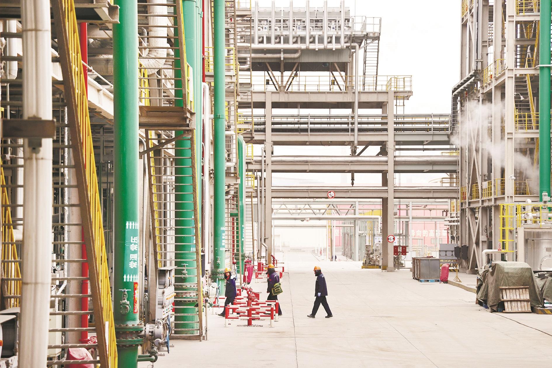 内蒙古东源科技有限公司内,工人在巡检设备。 (高瑞鹏 摄)