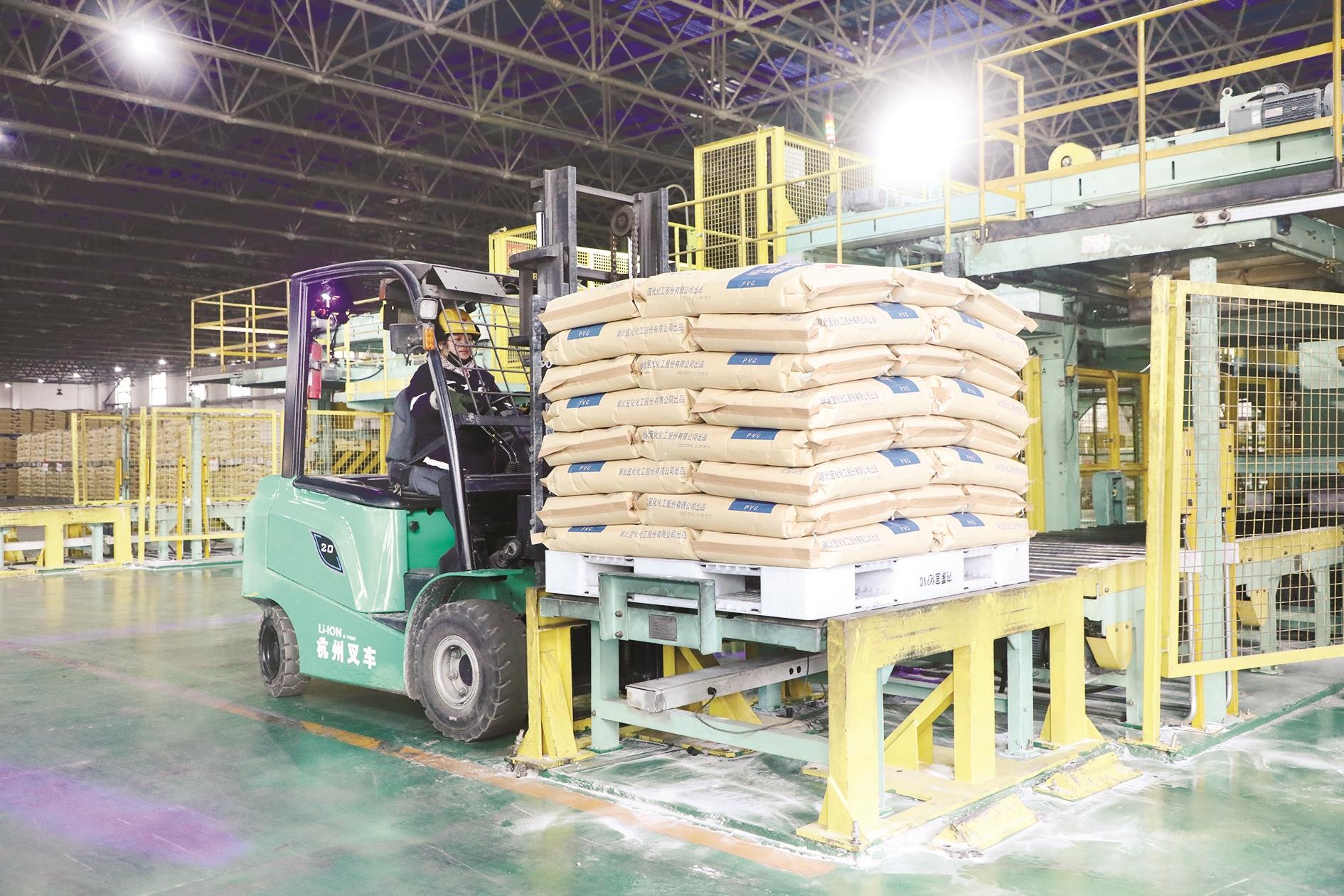 在内蒙古宜化化工有限公司中控室,工作人员坐在电脑前,紧盯显示屏上的各项生产数据,详细记录数据的变化,根据生产需求远程精准控制运行设备,控制好各项参数,确保稳定生产;生产车间内,履带飞转,一袋袋聚氯乙烯树脂被传输带源源不断送到仓库,机械臂上下舞动,将成品整齐码包,随后由货运叉车运输到物流火车上。PVC分厂生产副厂长方斌介绍说:“春节假期,员工采用轮休制度,企业处于生产状态。目前,人员全部上岗到位,大家信心满满、干劲十足,力争2024年生产再上一个新台阶!”