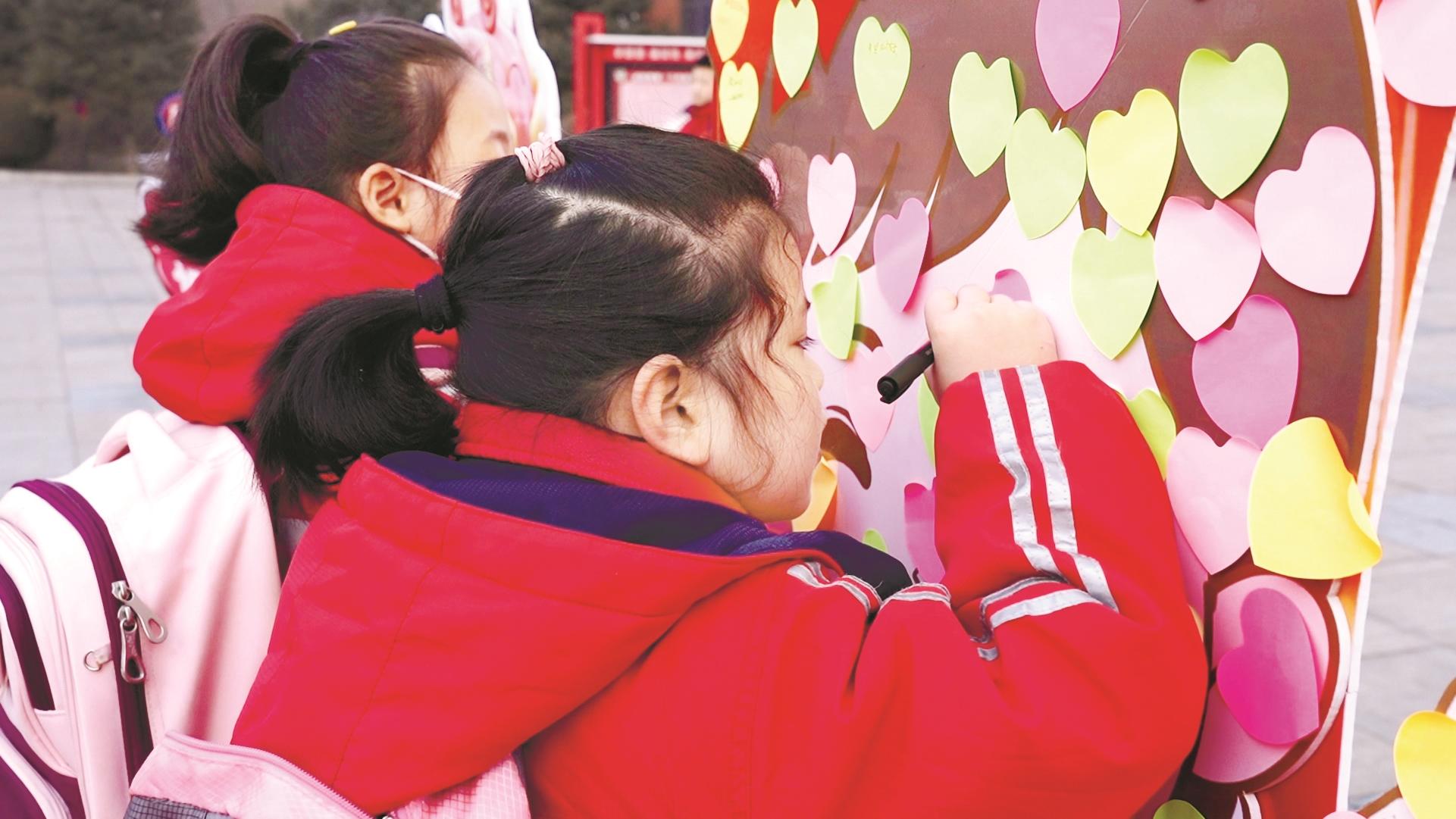 海南区第三小学的学生们元气满满迎接新学期。(崔岩岩 摄)