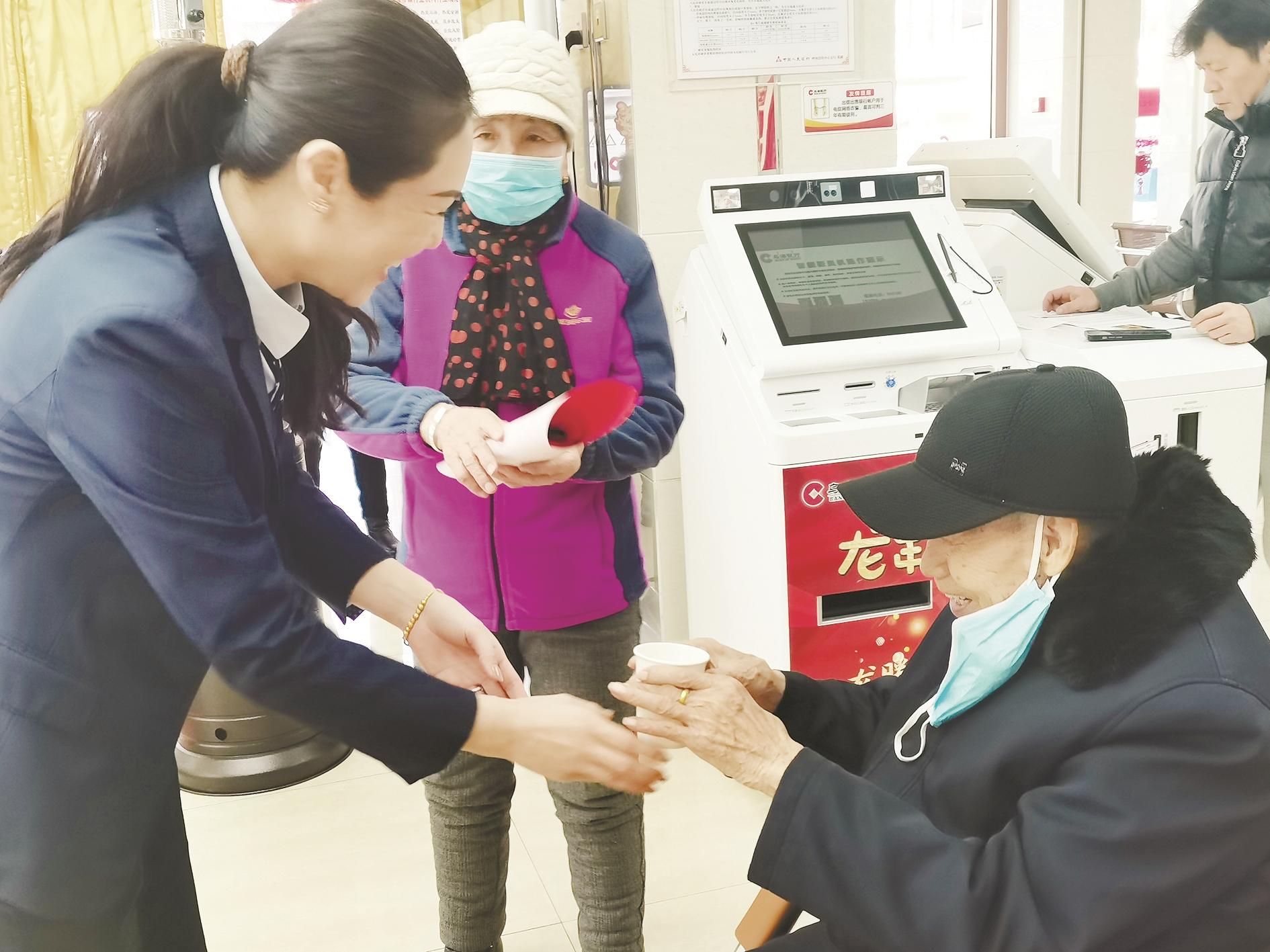近年来,乌海银行盈泽支行加强厅堂暖心服务,组织工作人员为客户提供暖心茶、爱心伞、轮椅等, 让客户办理业务便捷舒心。 (陈洋 摄)