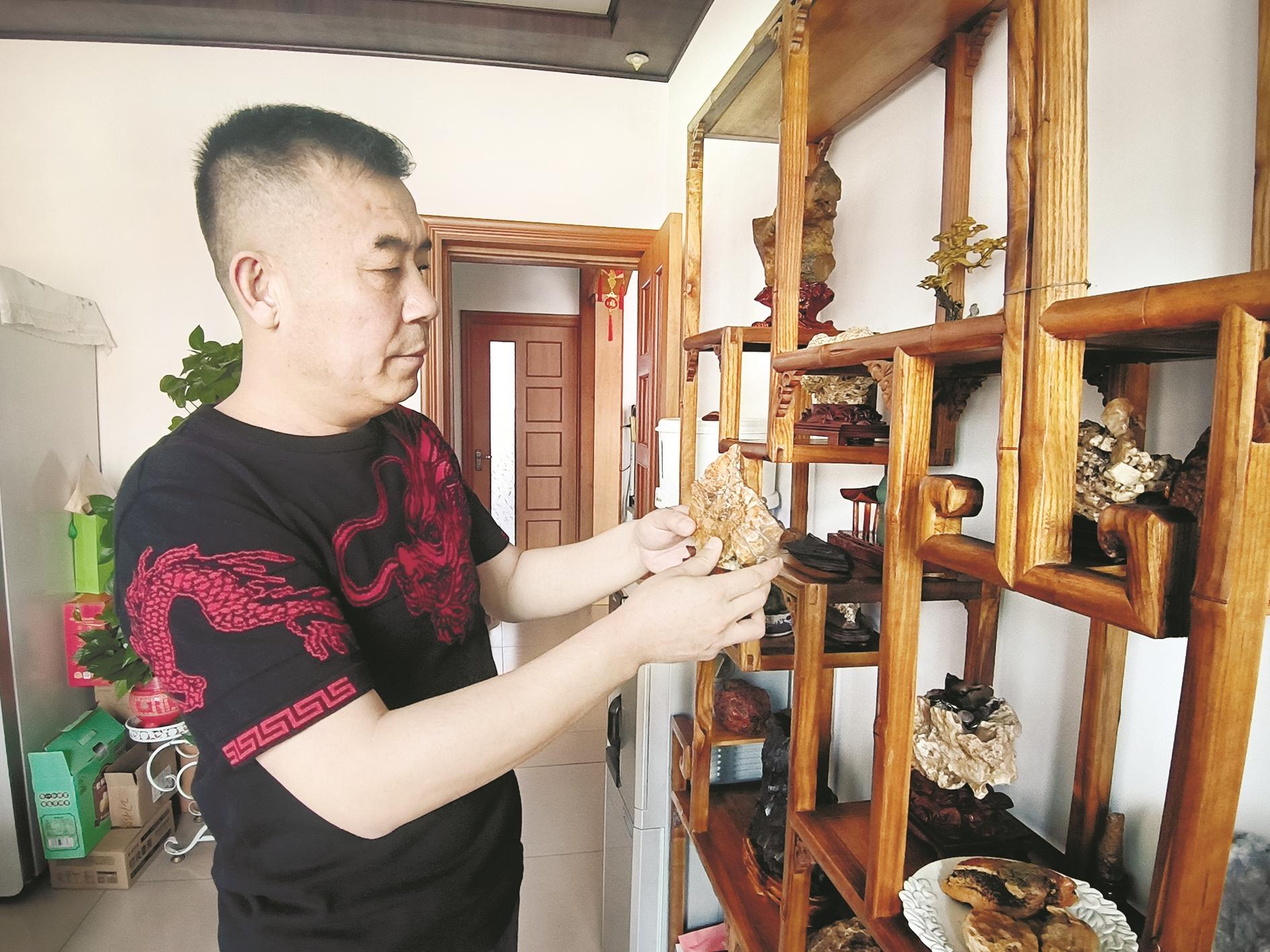 “赏石是我的个人爱好,我日常工作比较忙,在工作之余欣赏奇石是我减压的一种方式。和许多石友一起讨论奇石,自身的文化素养也得到了提高,让我很满足。”杜志强说。