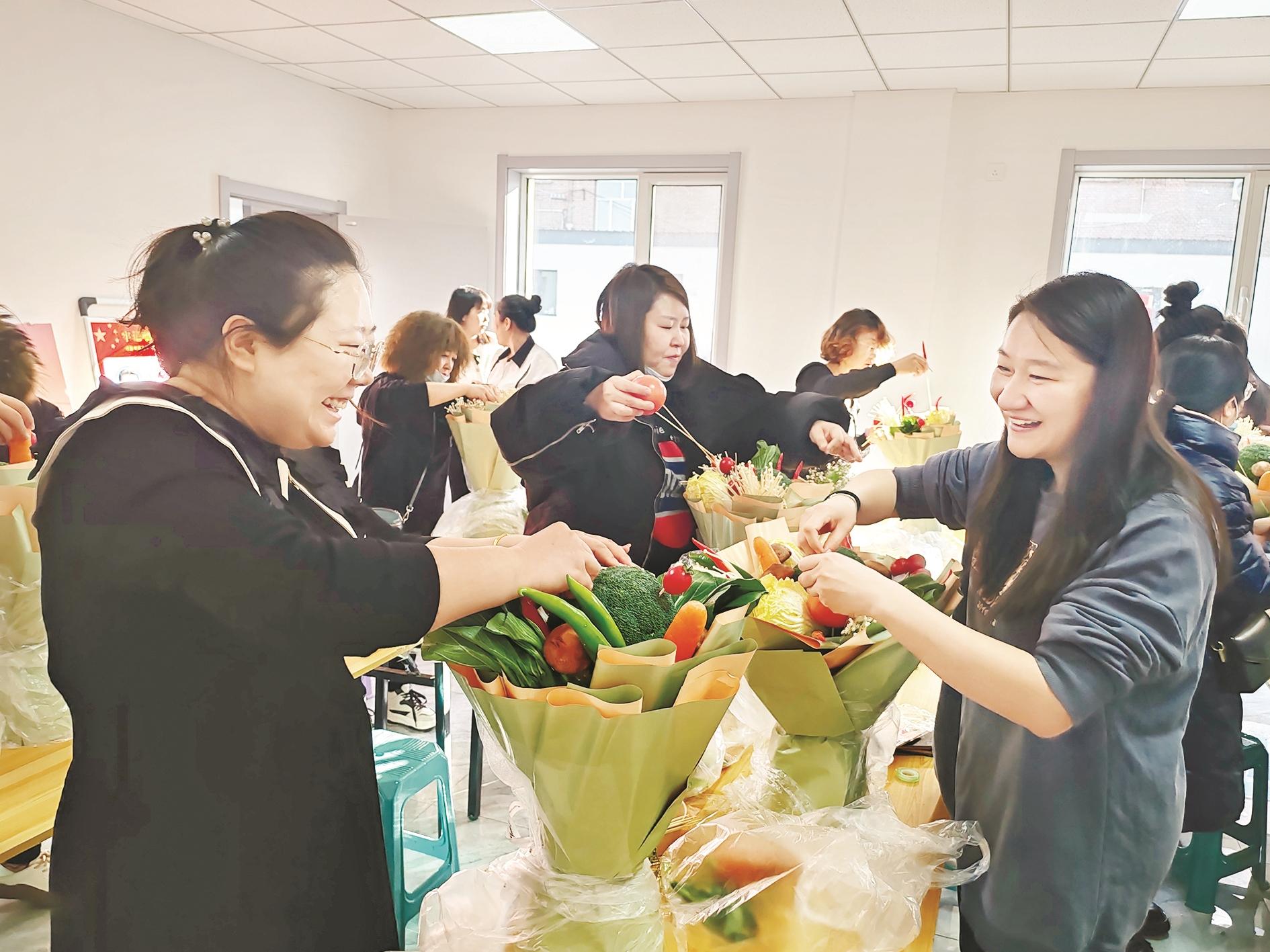 图②:海勃湾区新华街道和谐社区举办“‘蔬’你精彩”插花活动,增进邻里交流互动,促进社区和谐建设。 (张楚研 摄)