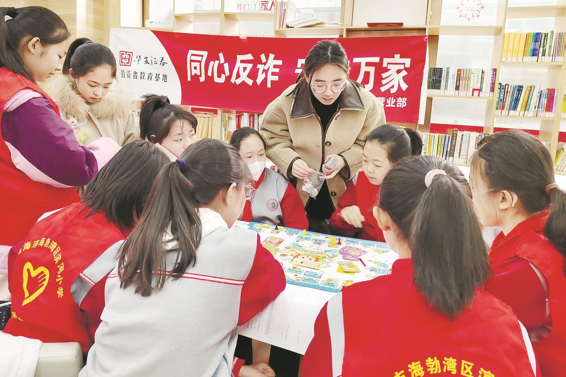 近日,海勃湾区滨河街道湖东社区新时代文明实践站联合金融机构开展了“强国有我 金融‘童’行”防范金融诈骗宣传志愿服务活动。活动中,工作人员向辖区青少年宣传讲解金融诈骗惯用手段、防范措施以及理财知识等内容,并通过“财赋大玩家”游戏,引导青少年树立正确的金钱观,共同抵制金融诈骗。 (黄建飞 摄)