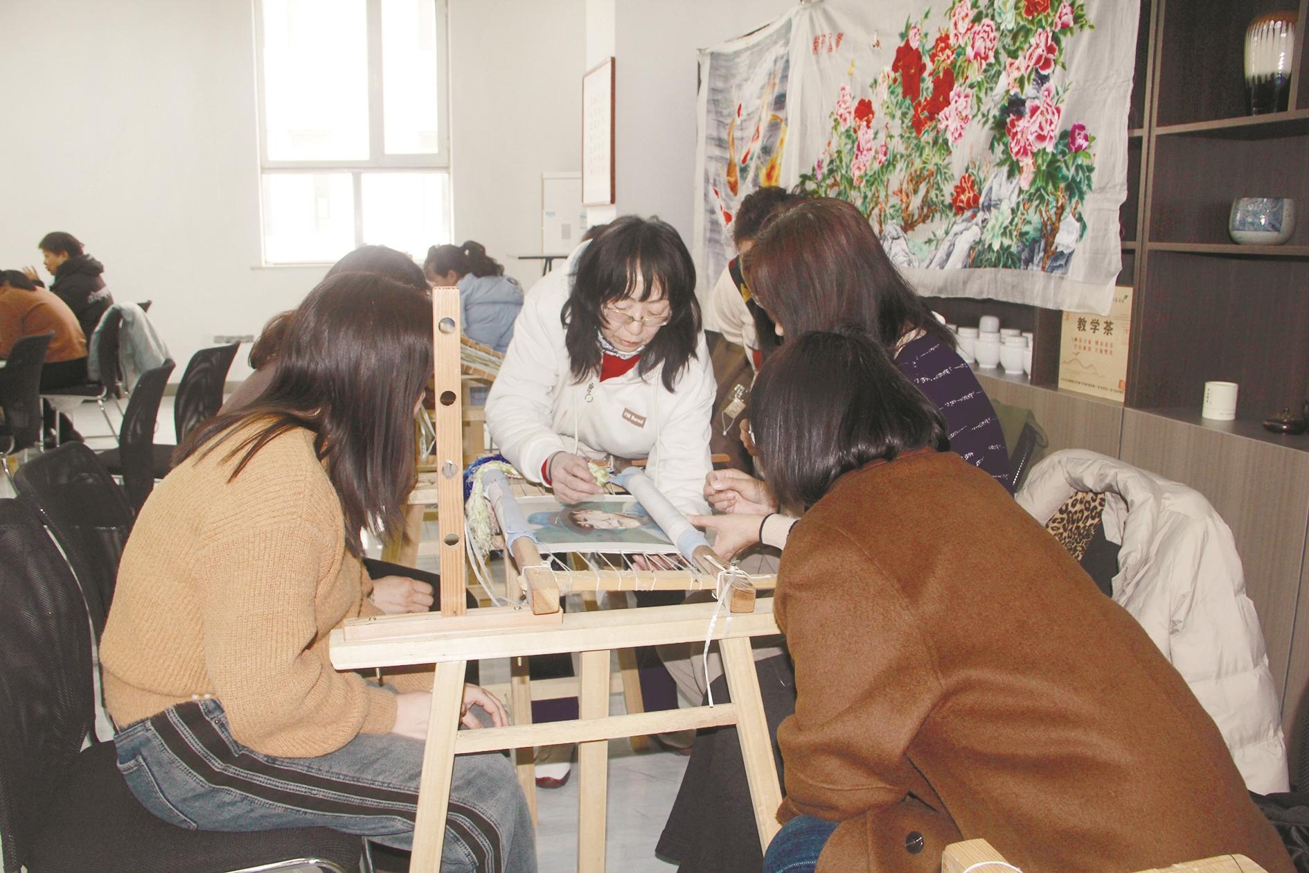 为优化提升“乡村振兴巾帼行动”,实施“乡村巾帼追梦人计划”,培育高素质女农民、巾帼新农人,多种方式助力有就业创业意愿的妇女、高校女大学生、下岗失业女性等群体实现就业增收,近日,市妇联举办首场“乡村振兴‘她’课堂 巾帼巧手促就业”手工技能培训班。培训班特别邀请到我市美术家协会艺委会副主任、非遗传承师刘芸为大家传授“蒙绣”技艺。 (段维娜 摄)