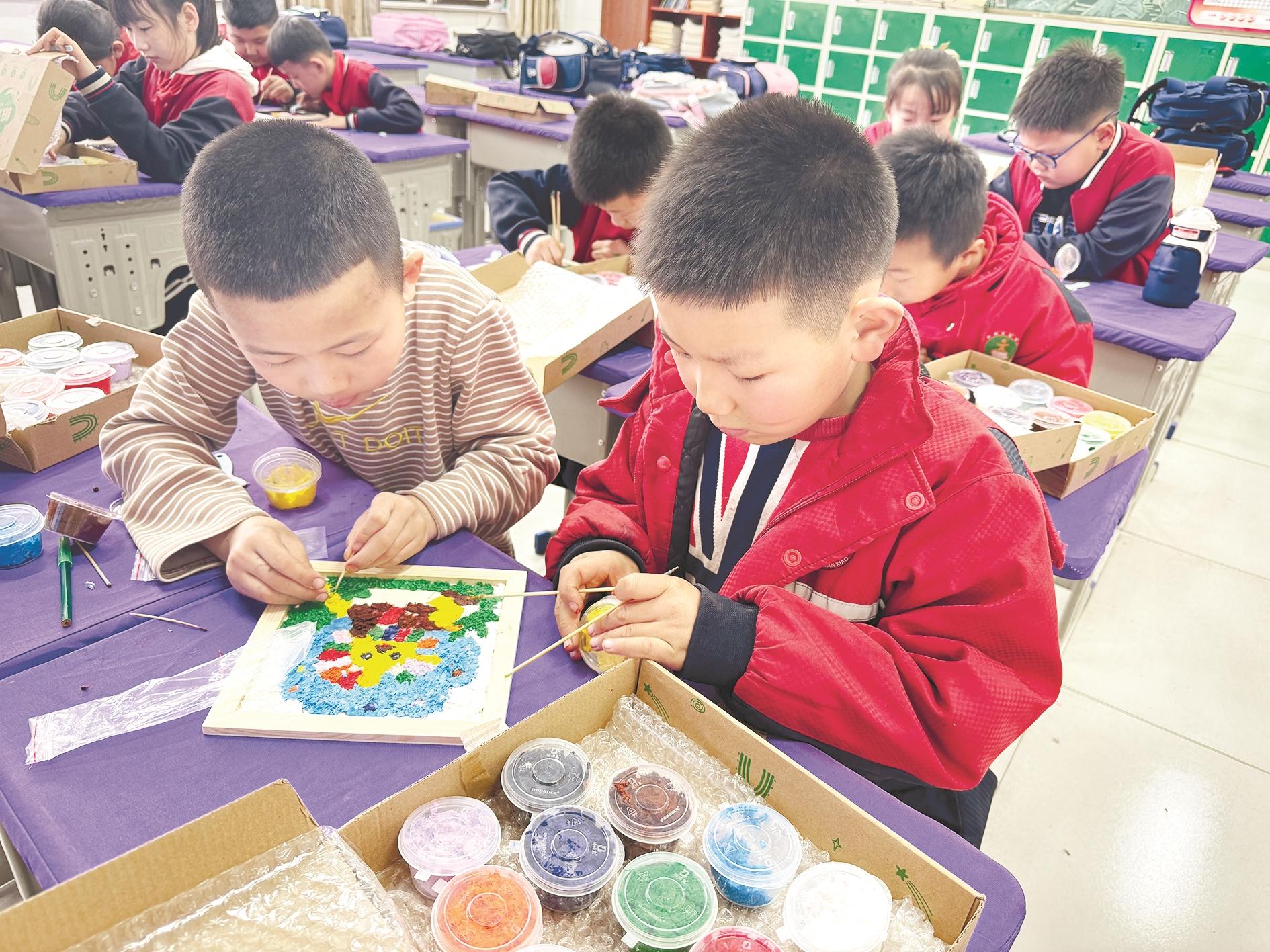“我们免费参加学校社团,学习自己喜欢的乐器、体育等课程。我参加的是毛球画特色社团,每周四的特色社团课成了我最期待的课程,在这里,丰富了我的想象能力和动手能力,每次完成一个作品都让我有满满的成就感。”该校五年级四班学生蔡昕彤说。