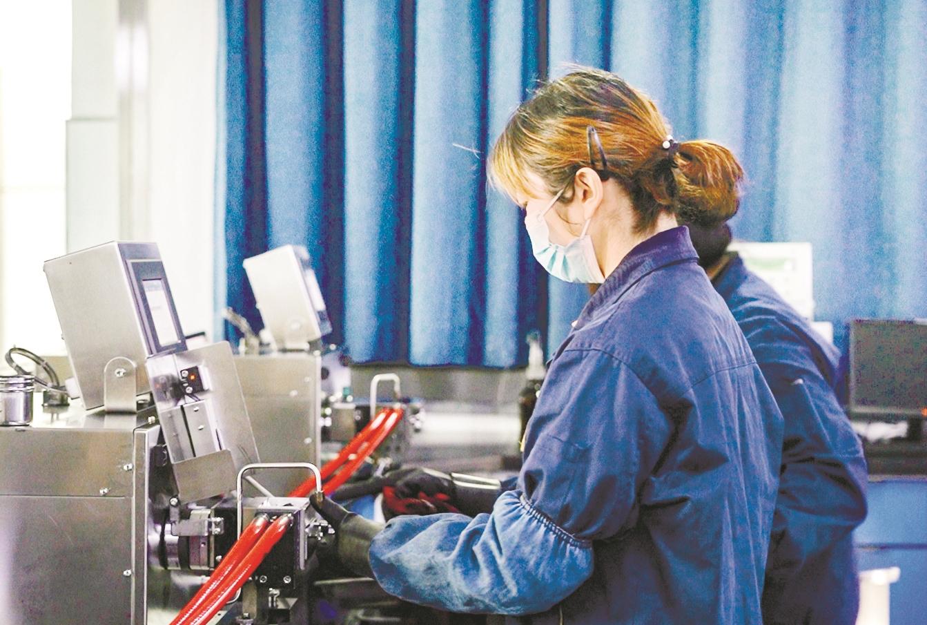 黑猫炭黑有限责任公司实验室内,工作人员在操作设备。