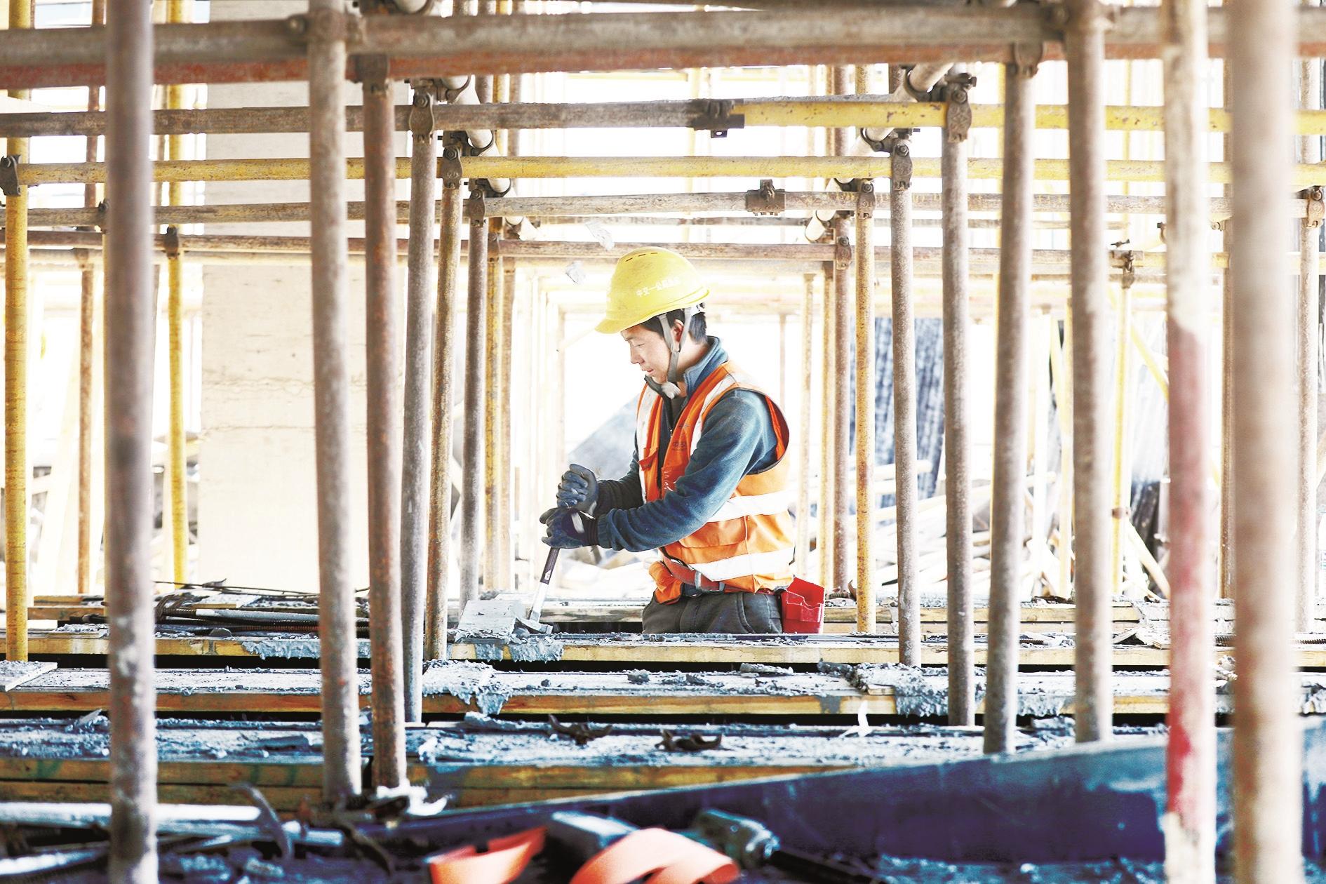 海南区第二幼儿园教学楼及配套工程项目,工人在拆卸模板。