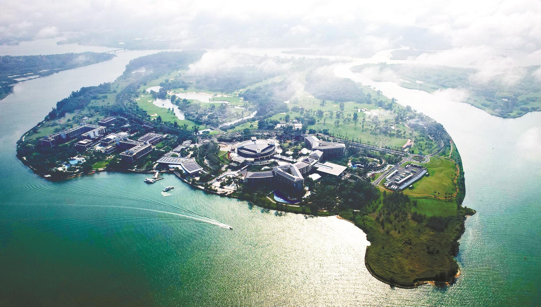 3月17日,鸟瞰博鳌近零碳示范区所在地——海南省琼海市博鳌镇东屿岛。