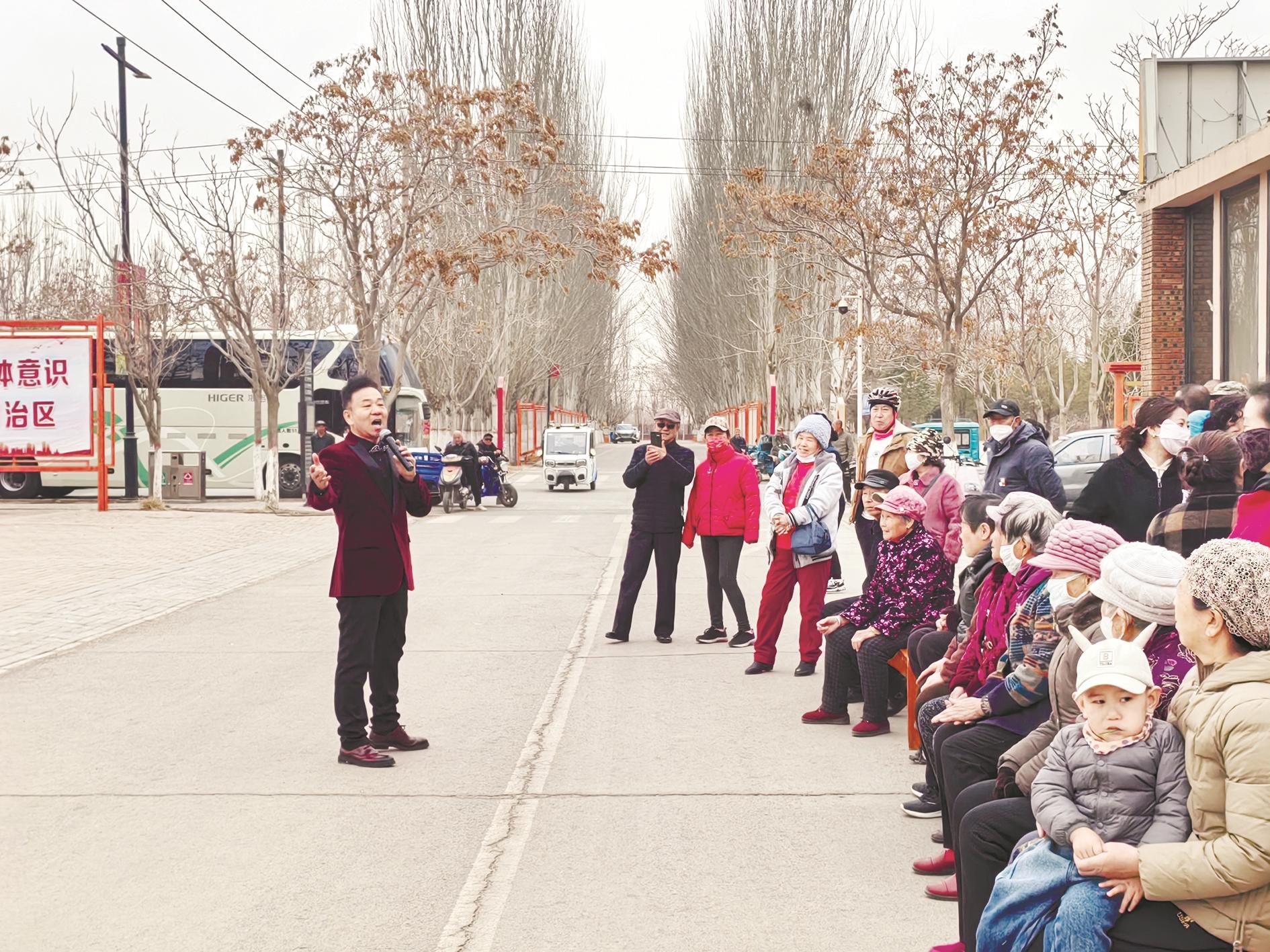 近日,乌海乌兰牧骑来到乌兰淖尔镇开展百团千场“下基层暨一刻钟社区生活圈建设主题文化惠民演出”活动。乌兰牧骑队员深入社区、农区等处,为群众送上别具韵味的文化大餐。 (张丽阳 摄)